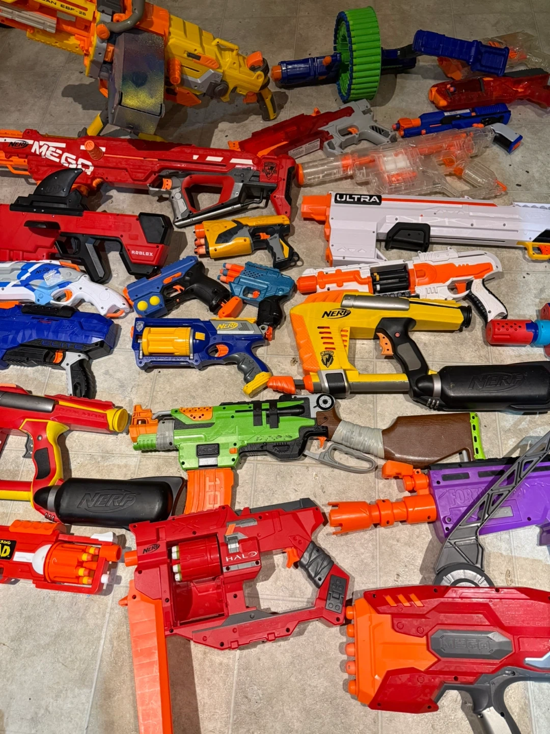 Selling a collection of various Nerf guns! Includes different models and colours. Great for kids or collectors. Only $10 each. All have been tested and are working. Each gun will be loaded with darts.