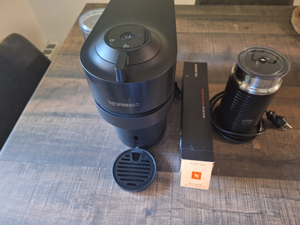 Both items Used 3 times . I'm not a fan of the coffee. Selling a Nespresso Vertuo Pop+ coffee machine in Liquorice Black, along with an Aeroccino3 milk frother. The Vertuo Pop+ is Nespresso's smallest and most colourful Vertuo machine, and can brew six sizes of coffee, hot or with ice. The Aeroccino3 will help you create the perfect milk froth for your cappuccinos and lattes! included 9 coffee pods