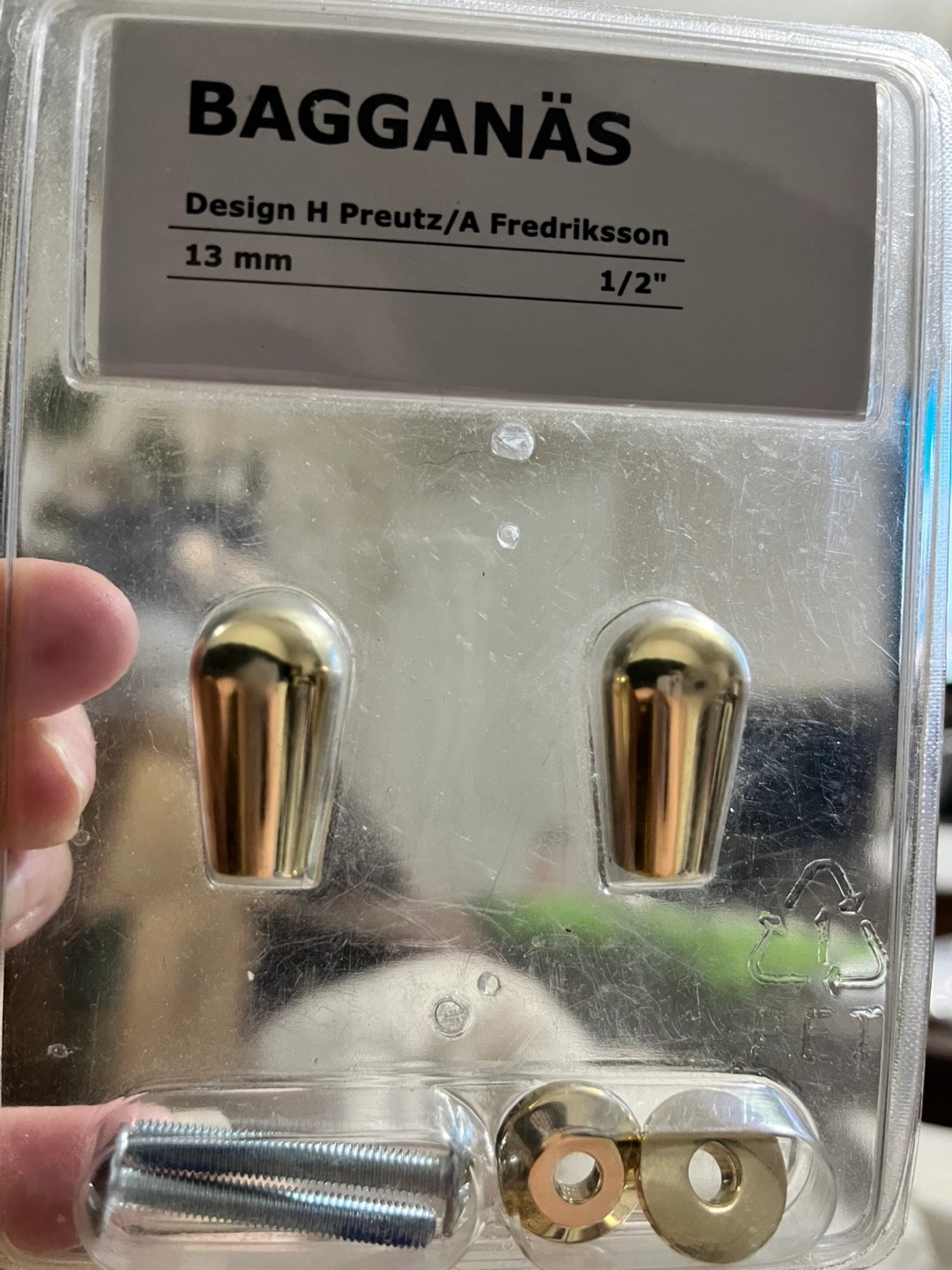 Selling as a set of 12 IKEA BAGGANÄS knobs in a gold colour (6 pkgs of 2 knobs). These are brand new and still in their original packaging. Each knob measures 13mm or 1/2". Perfect for updating your furniture, drawers or cupboards. Located in Mayland Heights, Calgary (NE) First come first served No holds without e-deposit No delivery Prices are firm