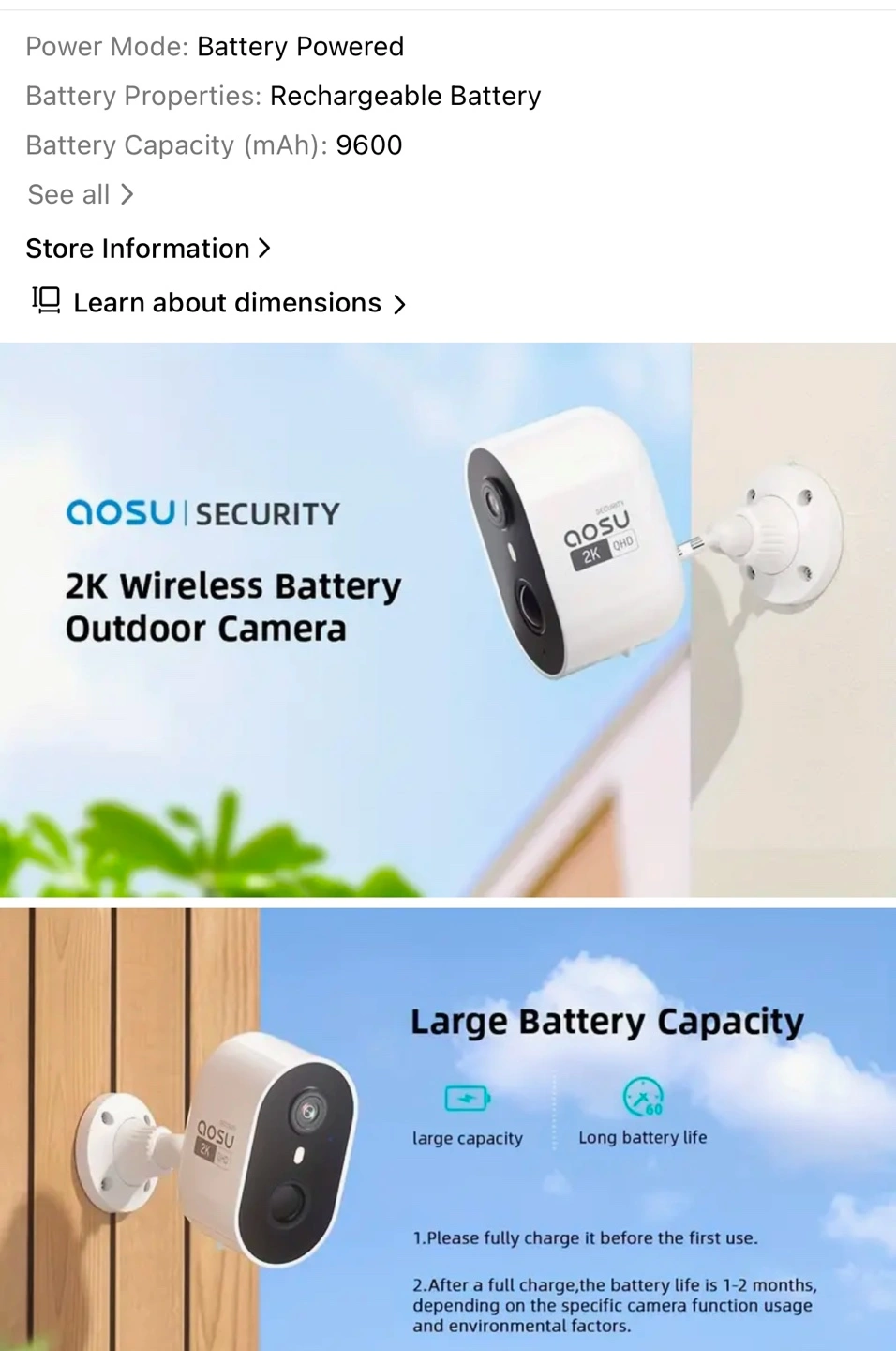 AOSU 2K Security Camera Wireless Outdoor, Battery Operated Camera Surveillance Exterieur, WiFi Camera with PIR Humanoid Motion Detection & Siren, 2 Way Audio, IP66 Waterproof, only 2.4Ghz WiFi