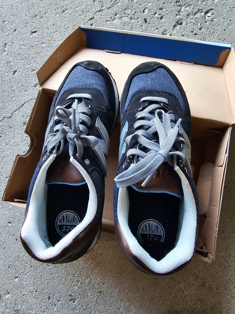 Selling a pair of New Balance 574 sneakers in size 8.5. They are in great condition and come with the original box. These are a stylish and comfortable choice for everyday wear!