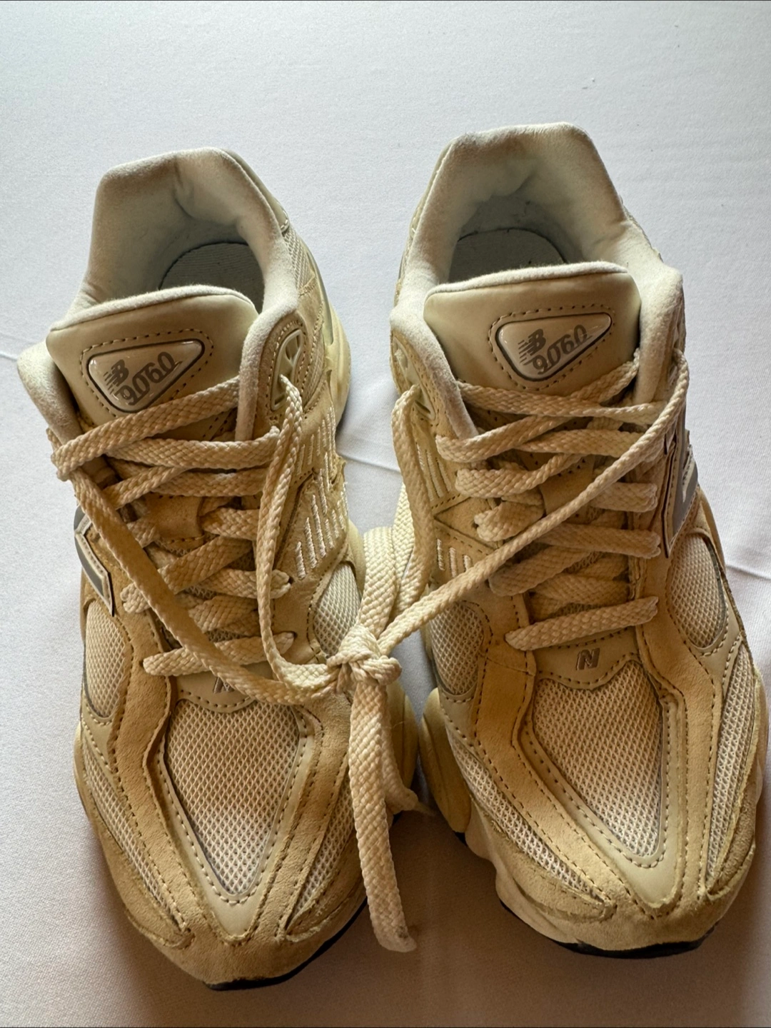 Selling a pair of New Balance 9060 sneakers in a lovely beige colour! These are in great condition and ready for a new home. They're super comfy and stylish for everyday wear.