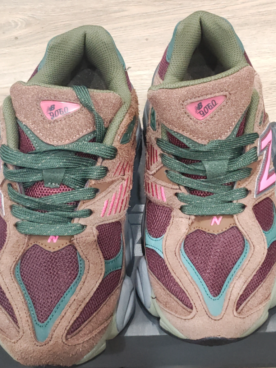 Selling a pair of New Balance 9060 sneakers in a unique brown and pink colourway. They're in great shape and ready for a new home! These sneakers offer a comfortable fit and stylish look, perfect for everyday wear.