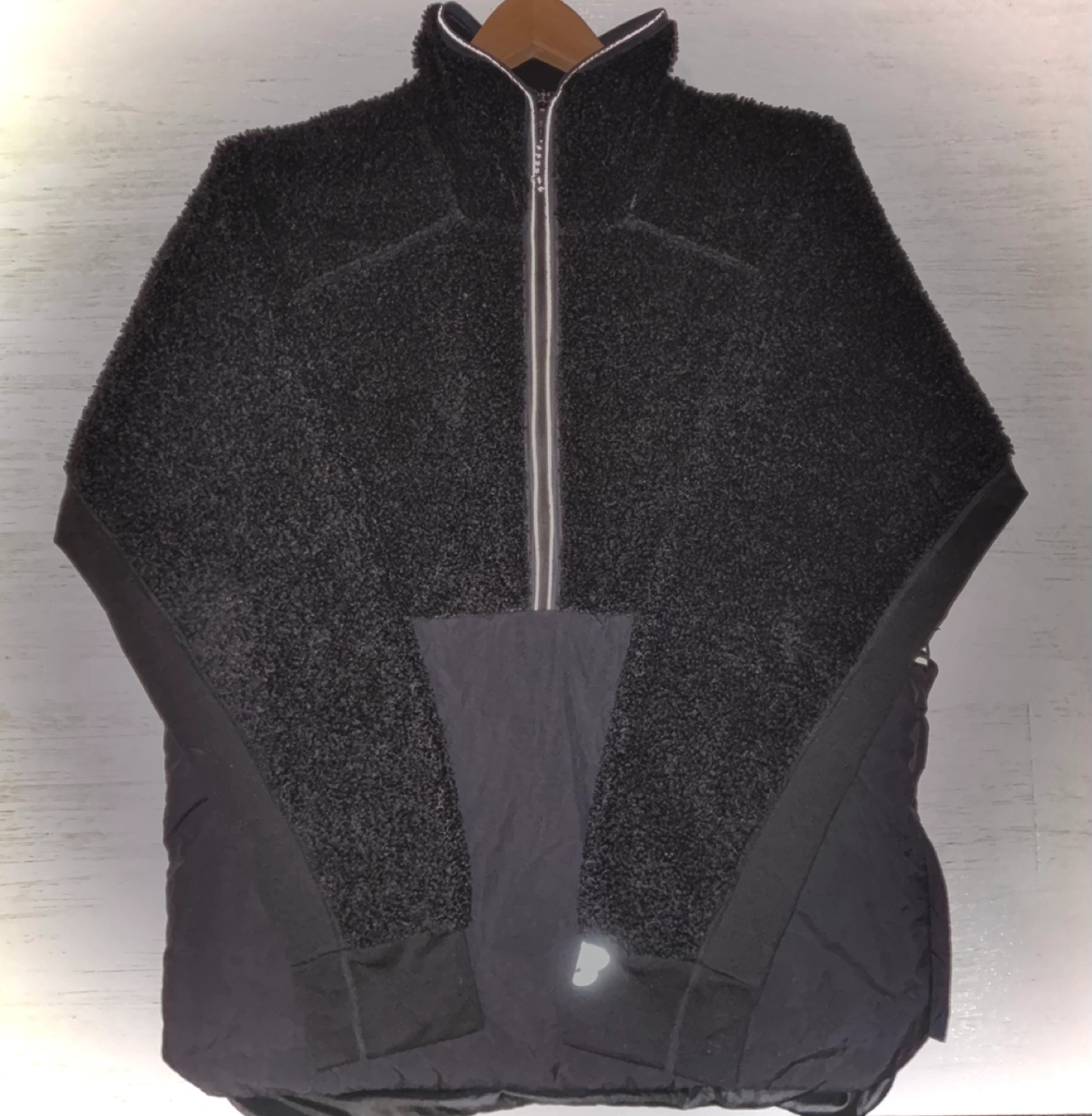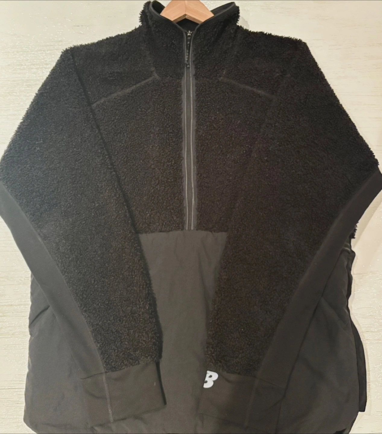 Cozy and stylish New Balance black fleece pullover! The fleece material is super soft and warm, perfect for those chilly Canadian evenings. It features a quarter-zip design and the New Balance logo. Great for layering or wearing on its own!