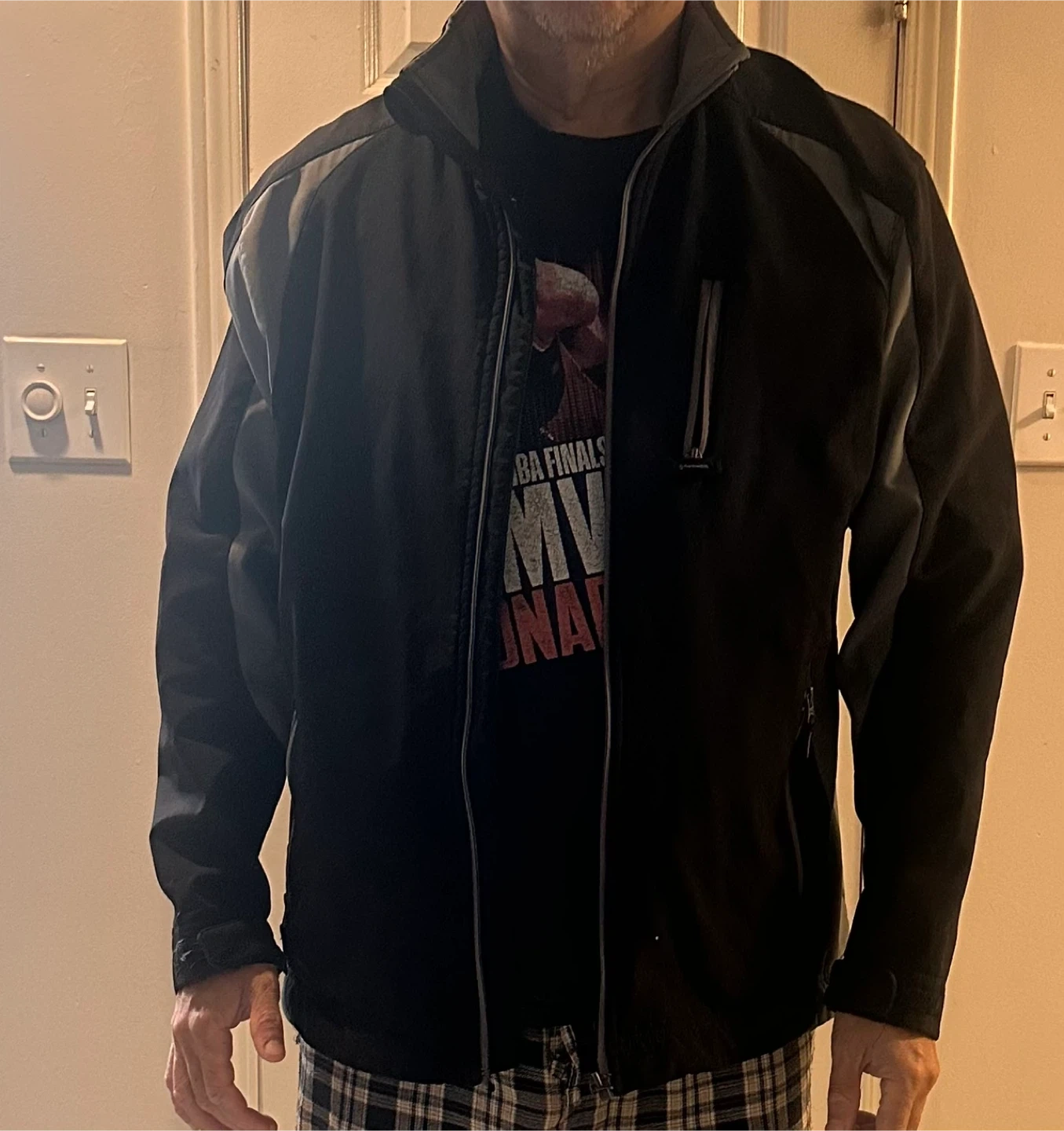 Selling a jacket in black and grey. It's in great condition and ready for a new home! Perfect for layering or wearing on its own during those cooler days.