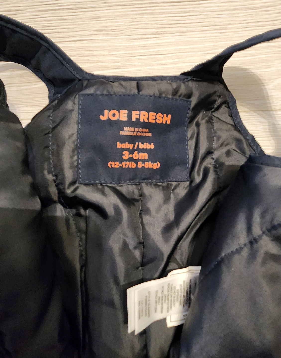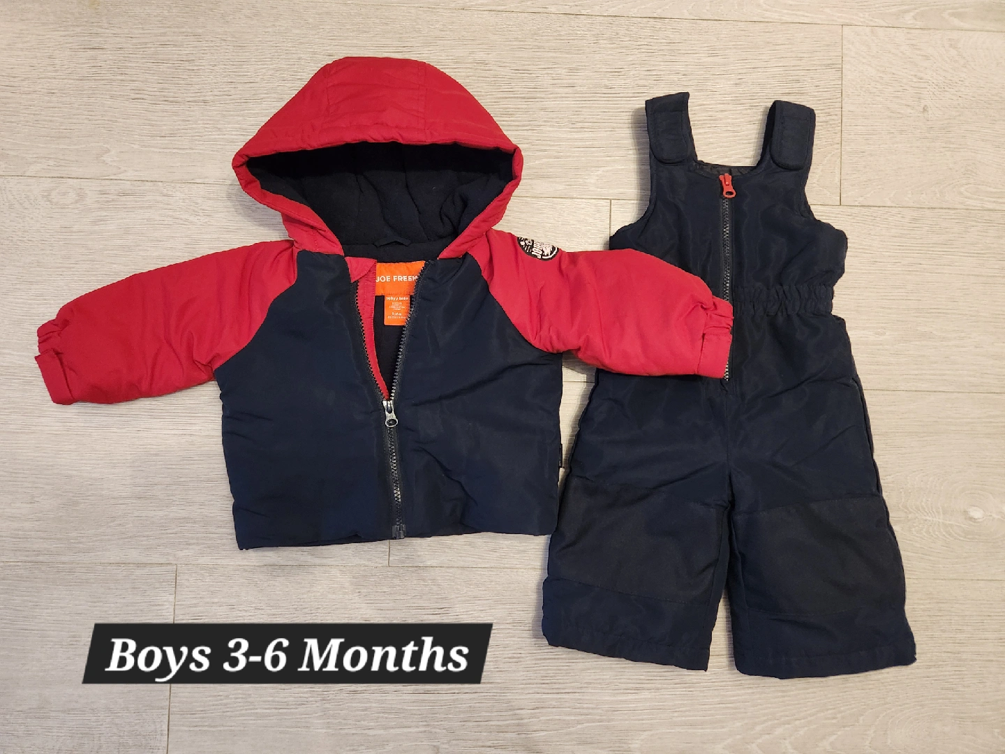 Joe Fresh boys 3-6 months winter jacket and matching snow pants with velcro straps NEW without tags. However, jacket has small pen mark on sleeve as seen in picture Smoke and pet free home Entire set for $15 Pick up near Leslie + Sheppard