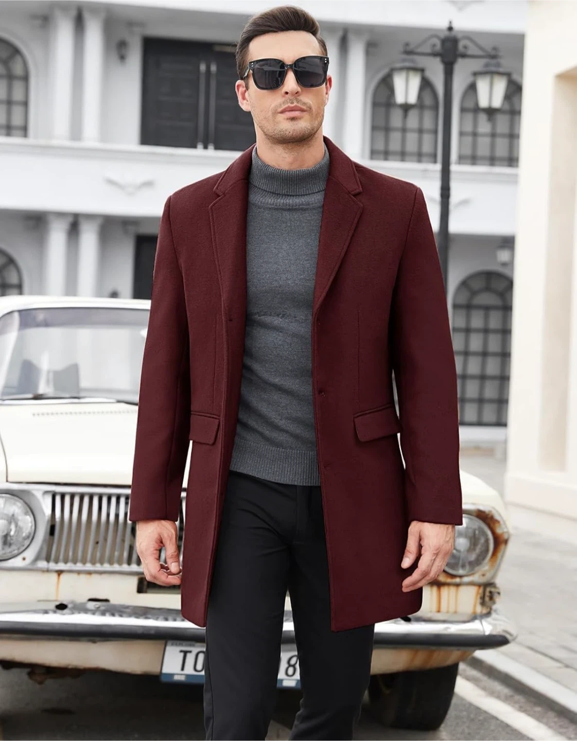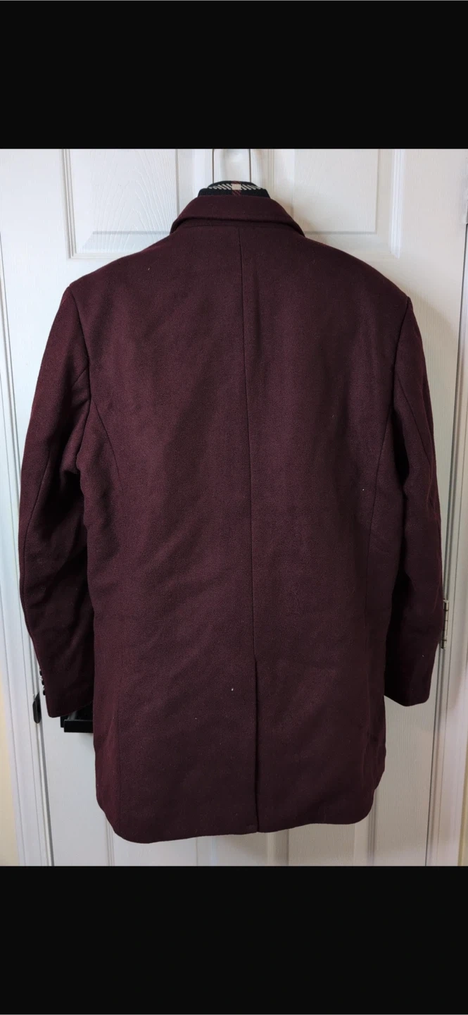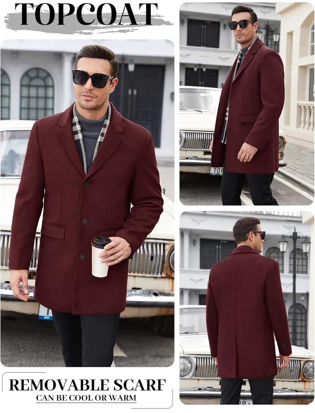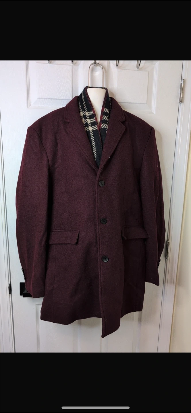 Keep warm this winter with this stylish burgundy jacket! It's a single-breasted vintage winter coat with a detachable scarf design. The outer layer is made of 30% wool and 70% polyester, and the inner lining is 100% polyester. It features a suit lapel collar, two outer pockets, one inner pocket, and a slit at the hem. The removable scarf can be worn to keep you cool or warm Fabric type Outer:30% Wool,70% Polyester. Inner:100% Polyester. This garment is made of high quality wool, which provides you with extreme warmth and comfort. Good warmth:The coat is thick and made of wool and other high-grade fabrics, which can effectively insulate the outside world from cold air and keep the wearer's body warm, while the lapel design can to a certain extent protect the neck from the cold wind. Unique design: The design of the jacket is simple and unobtrusive, without too many decorations and patterns, but designed with practicality in mind. Not only does it come with two pockets on the outside, but also on the inside, which is very practical without affecting the appearance of the clothes. These pockets can place some commonly used small items, such as handkerchiefs, keys and so on. Convenient and practical: The coat is paired with a removable plaid pattern scarf on the inside, which is easy for you to take off and match according to different occasions and moods. While improving the warmth, it also adds highlights and layers to the overall look. Fashionable and Versatile: This coat is designed to meet the needs of formal occasions, highlighting the professionalism and elegance of the wearer; it can also be easily integrated into casual wear, whether it is paired with jeans or slacks, whether it is paired with a hoodie or a sweater, it can present a different style. Its versatility makes it an indispensable closet piece.