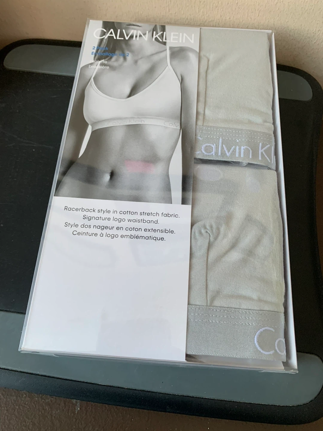 This is a brand new Calvin Klein 2-pack bralette set, size M/M. The bralettes are made from a cotton stretch fabric and feature a racerback style with a signature logo waistband. Originally bought for $68.00, this set is in perfect condition and ready for a new home!