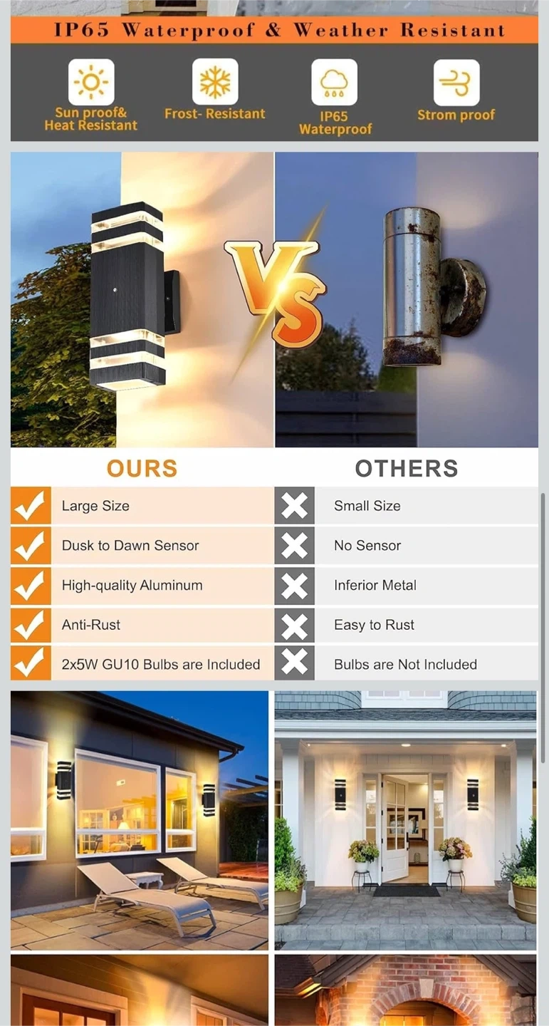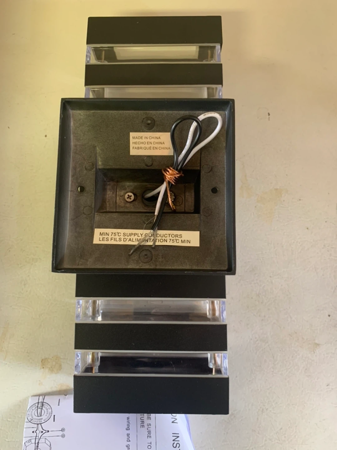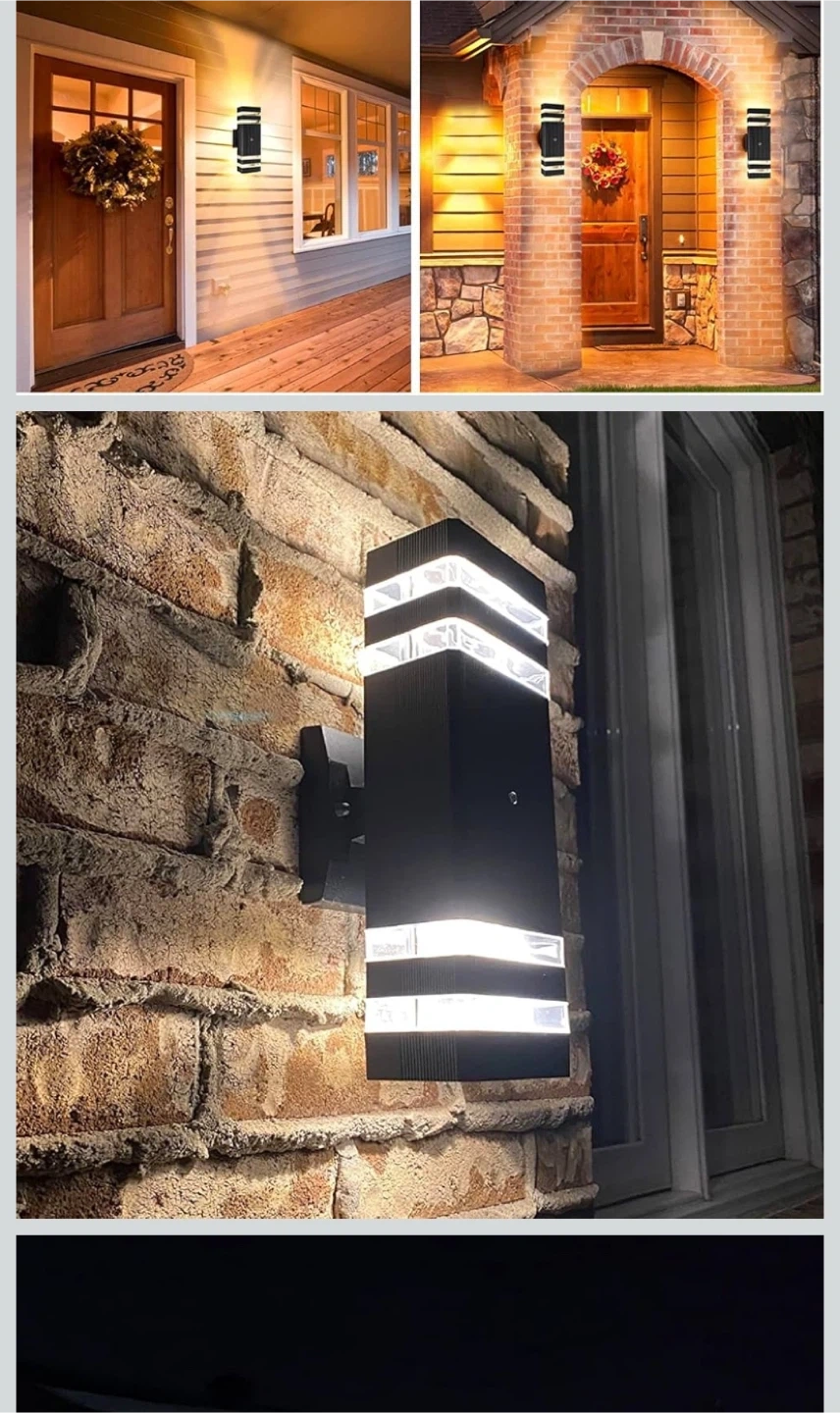Selling a new outdoor wall light in matte black! - Material: Aluminum & Acrylic - Power: 2x 5.5 W - Has a light sensor that turns off automatically at daytime and turns on automatically at night - Can withstand rain and snow Assembly and installation instructions are included