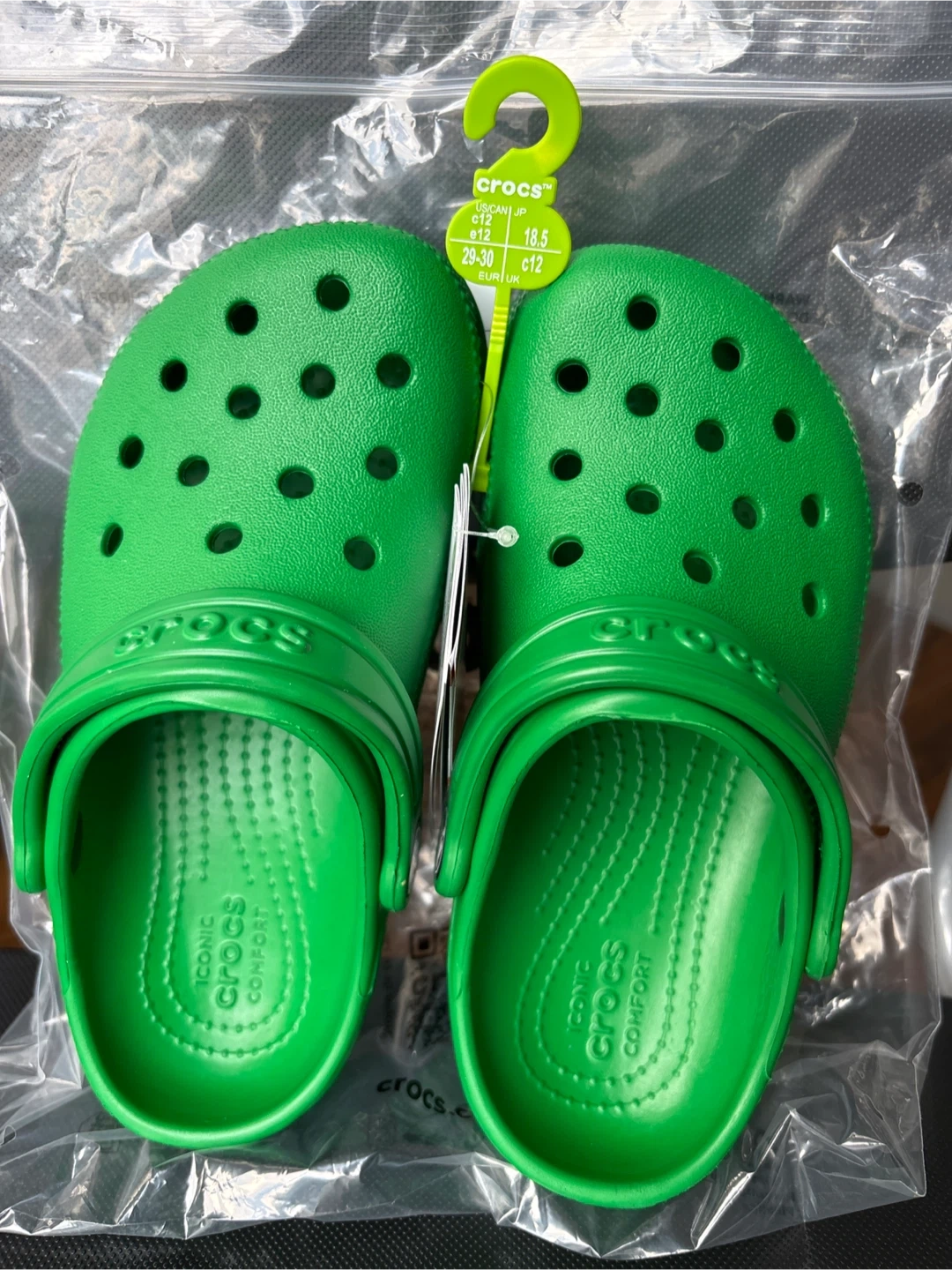 Selling a brand new pair of Crocs Classic Clogs in a vibrant green colour! They're a size 12. These clogs are iconic for their comfort and versatility. Perfect for everyday wear!