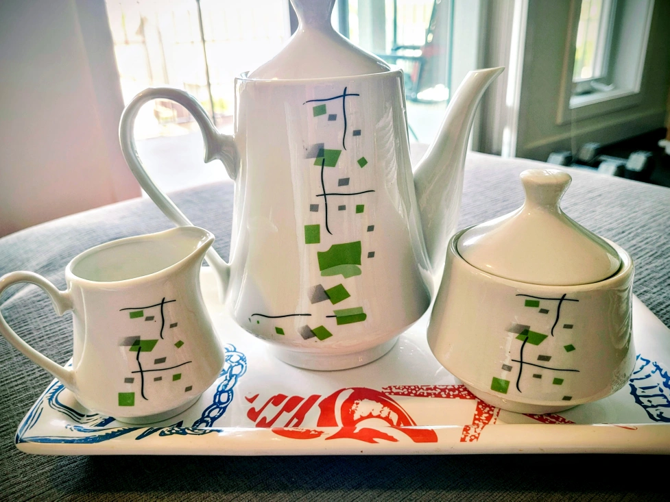 Never used. 15 plates, tea pot, creamer and sugar container with plate, salt/pepper/sugar set. Etransfer and pick up only.