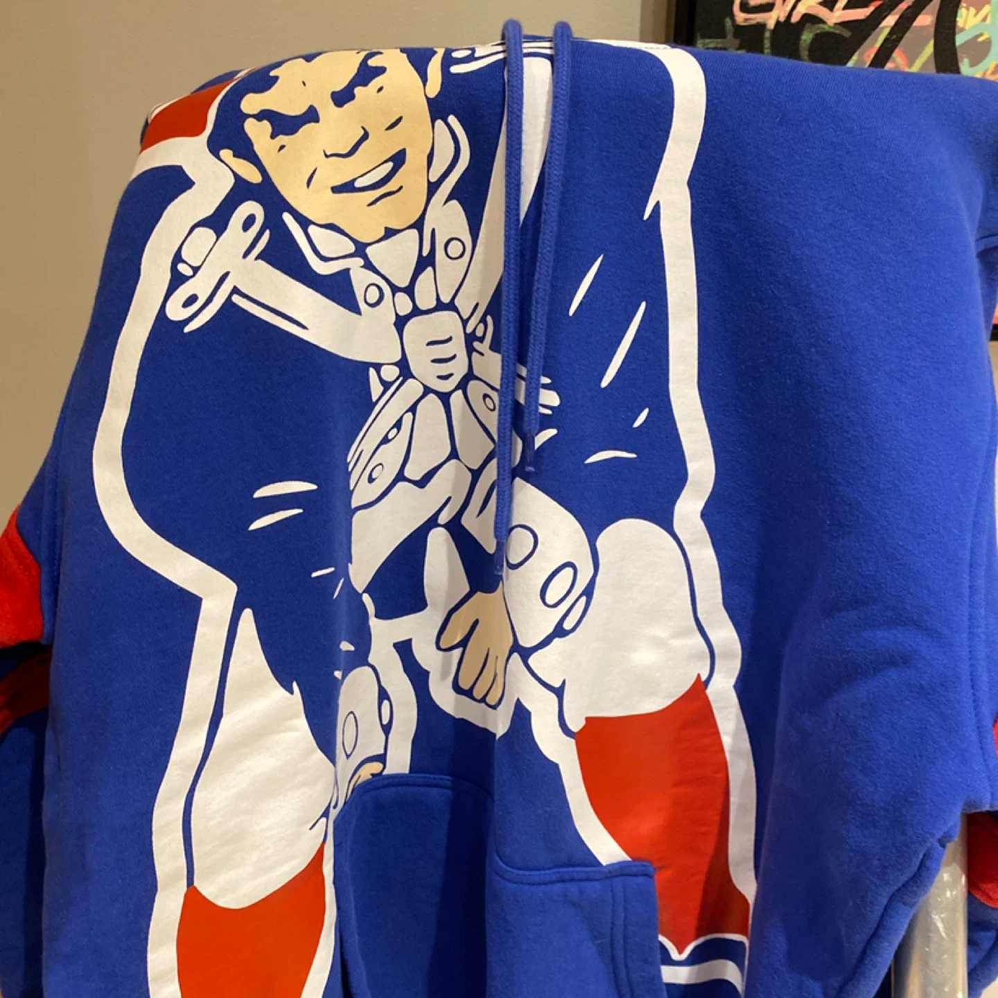 Great condition Patriots hoodie with small stain on front pocket as shown. Otherwise hoodie appears and feels almost brand new. Size Men’s Large. Pick up in south Barrie.