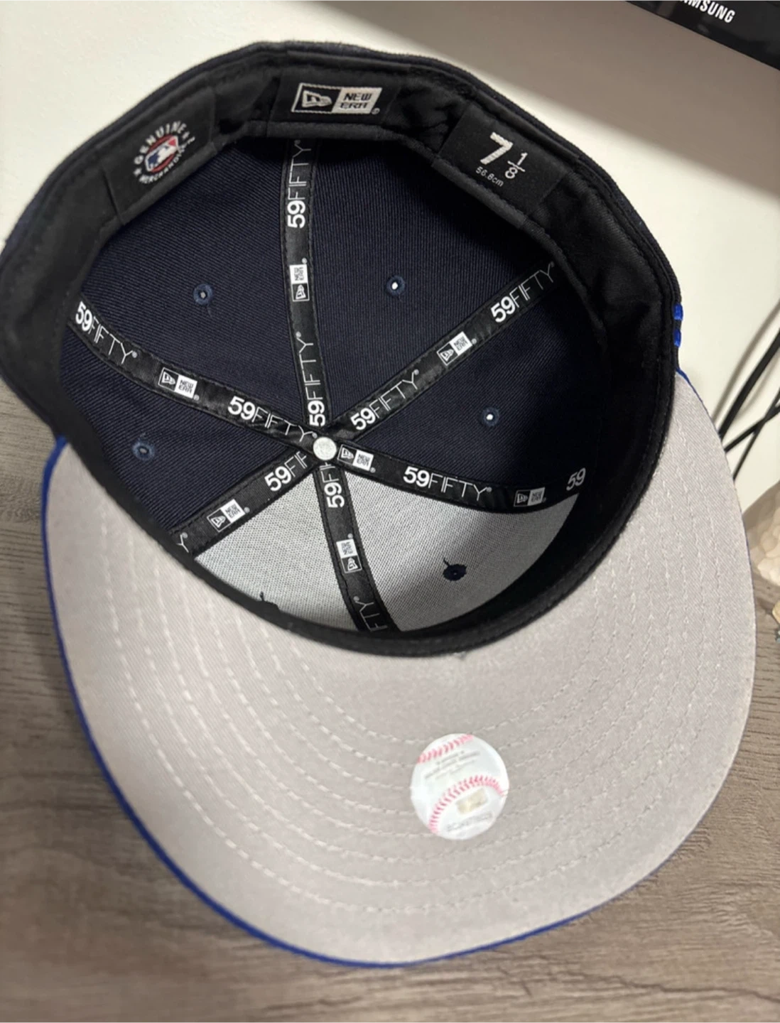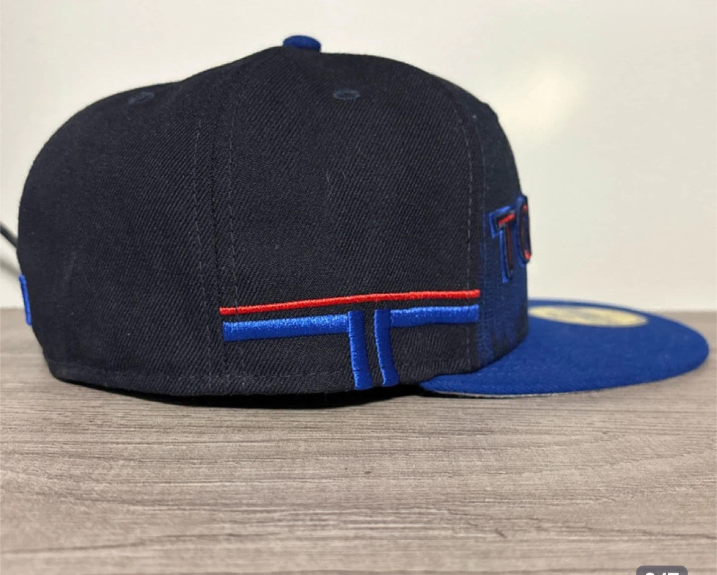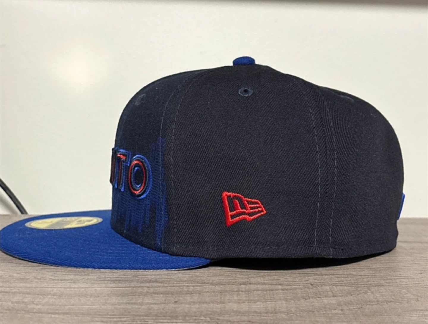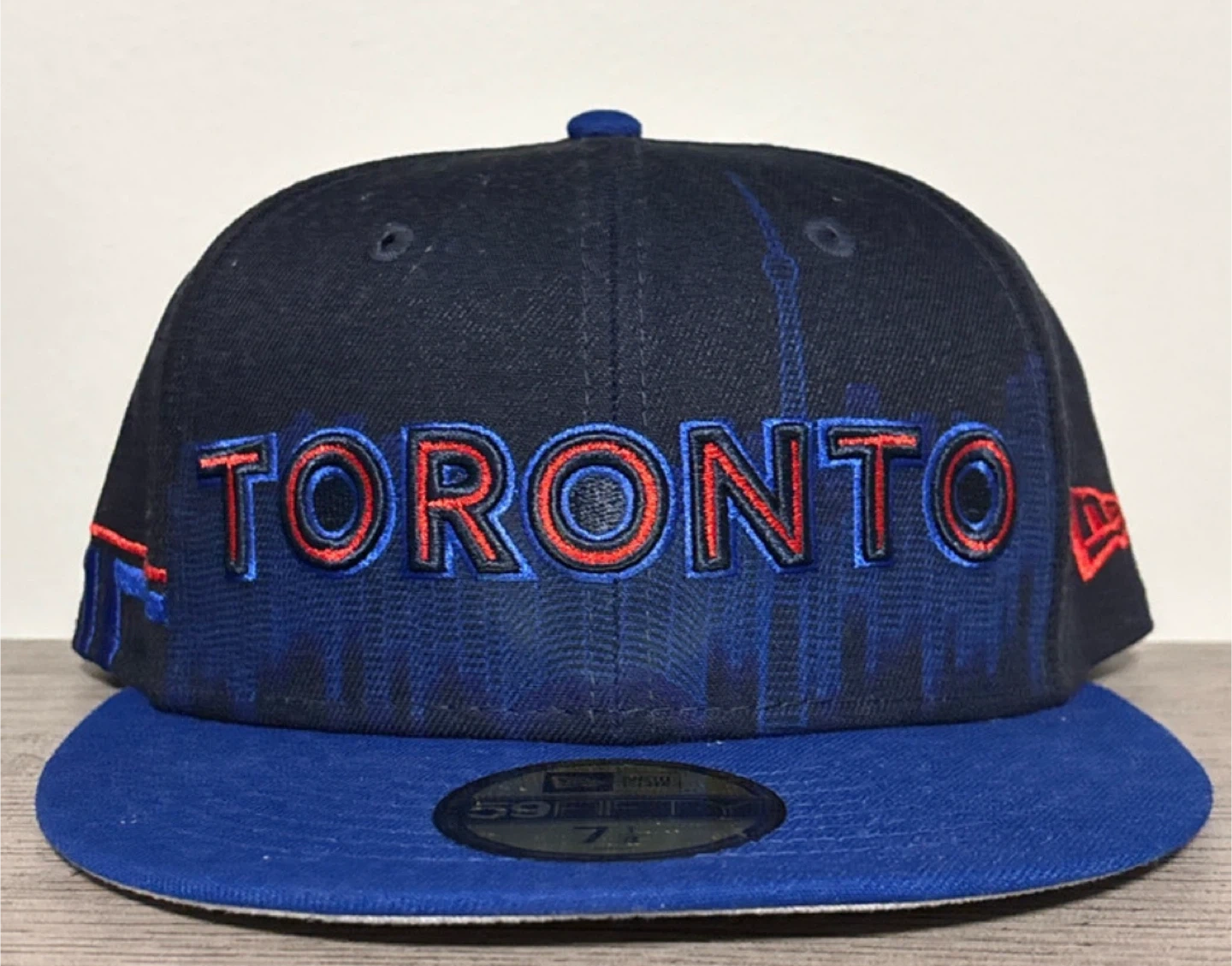 Selling a New Era 59FIFTY fitted cap featuring the Toronto Blue Jays! It's a stylish hat with the Toronto skyline embroidered on the front. The cap is a size 7 1/8. Perfect for any Blue Jays fan!