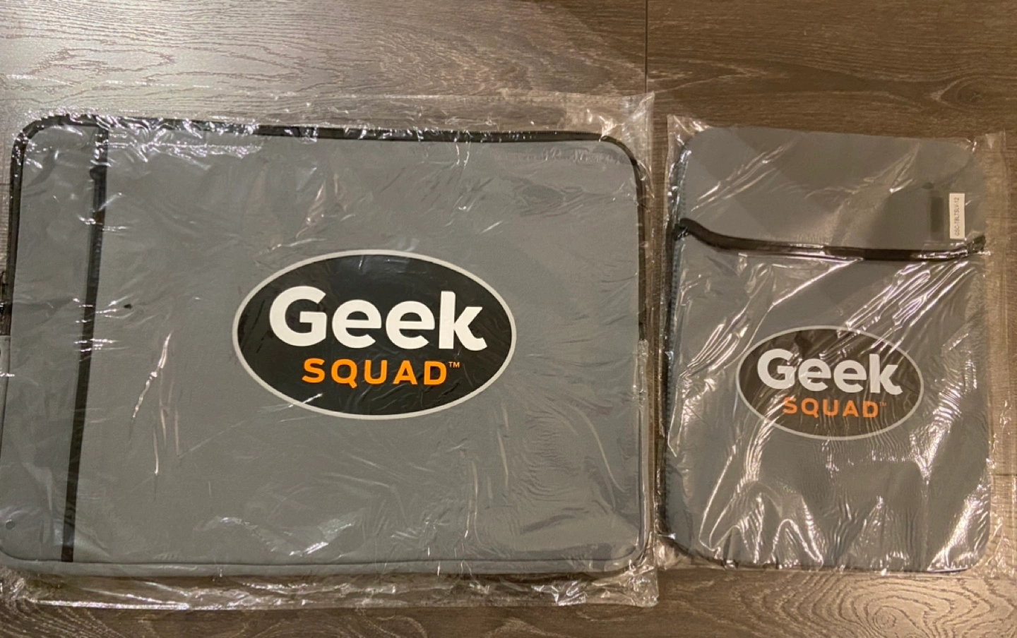 Grey laptop sleeve and matching smaller pouch. Both items are new and sealed in plastic. Perfect for protecting your electronics. Large is 17.5 x 12 inches Small is 12 x 9 inches Available for pickup only near Distillery at Front Street and Rolling Mills Road!
