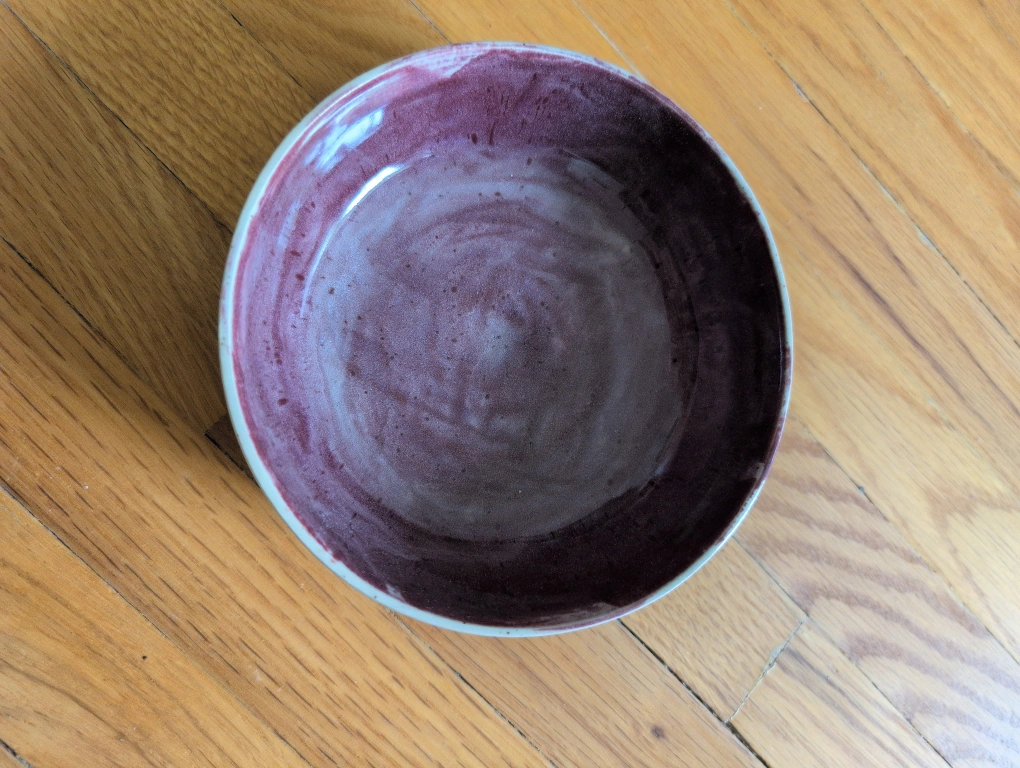 Selling a brand new handmade ceramic bowl. It's has a lovely maroon colour inside and measures approximately 6 inches across and 2 inches tall. Great for serving or display!