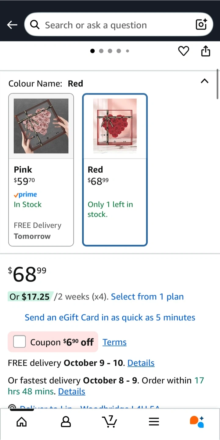 Perfect for valentine’s, anniversary, wedding, mother, grandmother, events, any gift occasion. Pick up at: - Vaughan: Major Mac & Weston (flexible) Alternatively at: - North York: 404 & Finch (MON/TUE/THU 9-3pm) Or shipping (1-2 business days with tracking number): extra $8