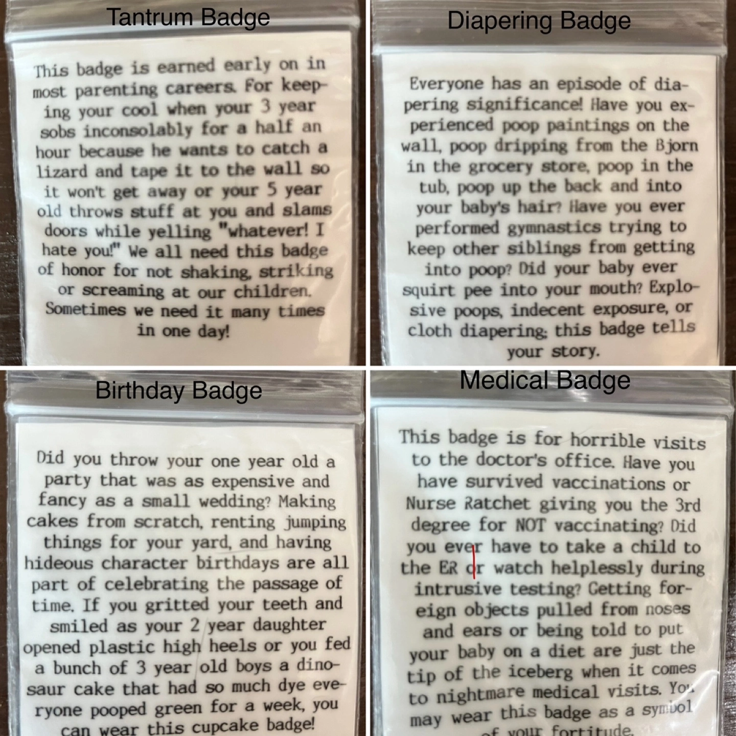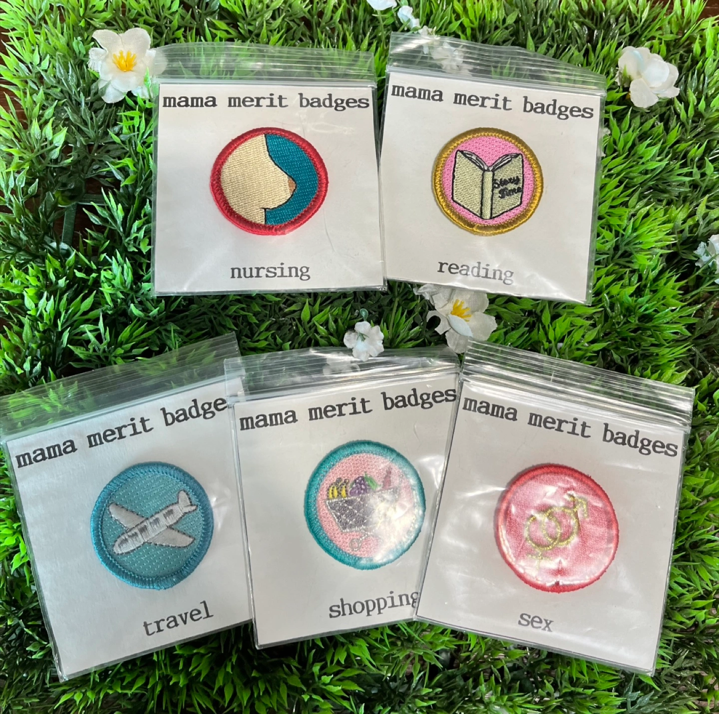 New set of 11 Mama Merit Badges, sold as a set only. Each badge is 1.5”. Set includes: Travel badge Shopping badge Reading badge S*x badge Nursing badge Sleeping badge Eating out badge Diapering badge Medical badge Birthday badge Medical badge Located in Mayland Heights, Calgary (NE) First come first served No holds without e-deposit No delivery Prices are firm