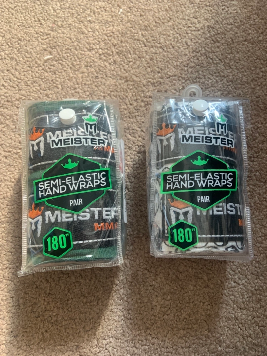 Selling a pair of brand new Meister MMA semi-elastic hand wraps. They are 180" in length and still in their original packaging! I’ve got 3 green ones and 2 skull ones, I am selling one for $5 or 3 for $10. Please feel free to ask any questions