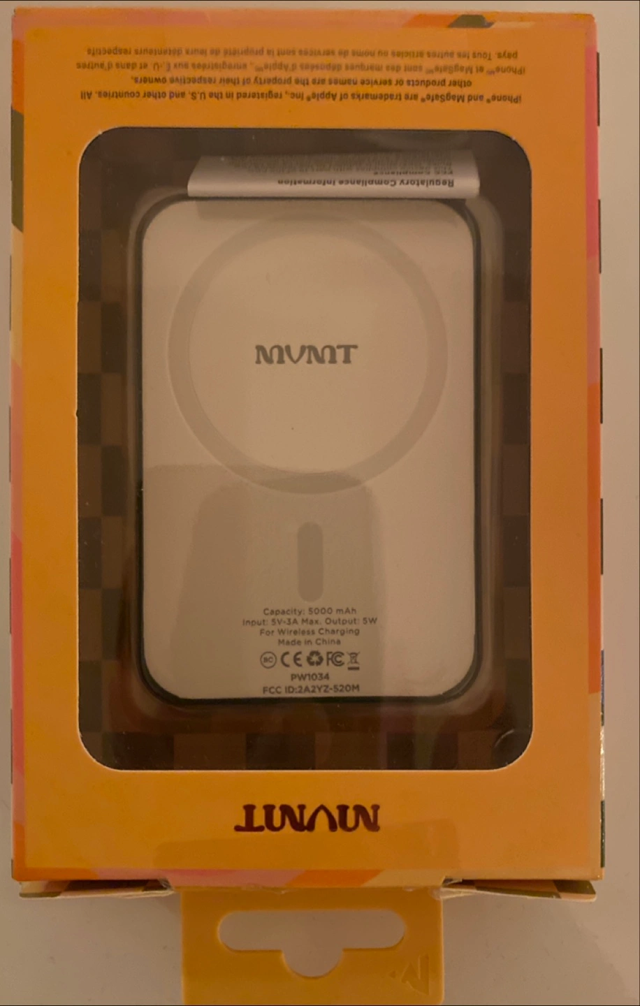 Selling a brand new MVMT wireless charging pad! It's still in its original packaging. This charging pad has a capacity of 5000 mAh, with an input of 5V-3A Max and an output of 5W. Perfect for wireless charging on the go!