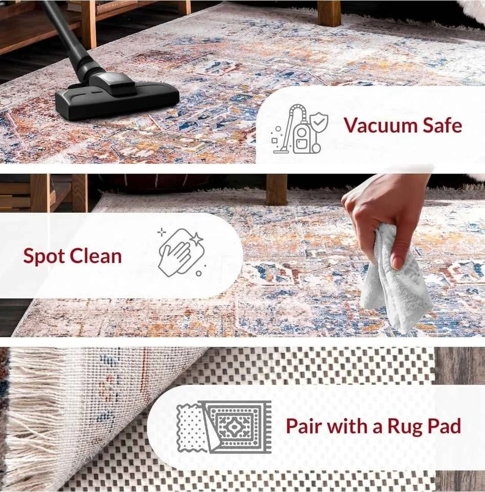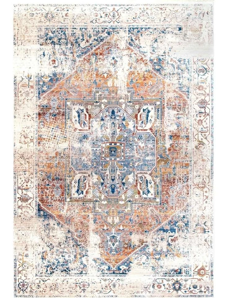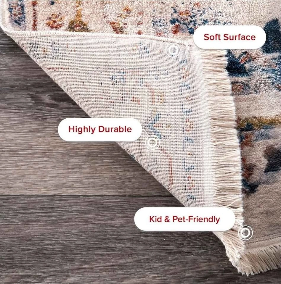 Brand New in original packaging. 6x4 ft Rectangular. 100% Polyester, made in Turkey Designed with resilience against everyday wear-and-tear, this rug is kid and pet friendly and perfect for high traffic areas of your home such as living room, dining room, kitchen, and hallways Sleek and functional 0.31” pile height allows for convenient placement in entryways, underneath furniture, and will not obstruct doorways Stylish and versatile this traditional medallion rug is the perfect addition to any room. This rug also includes 1" fringe detail on both ends.