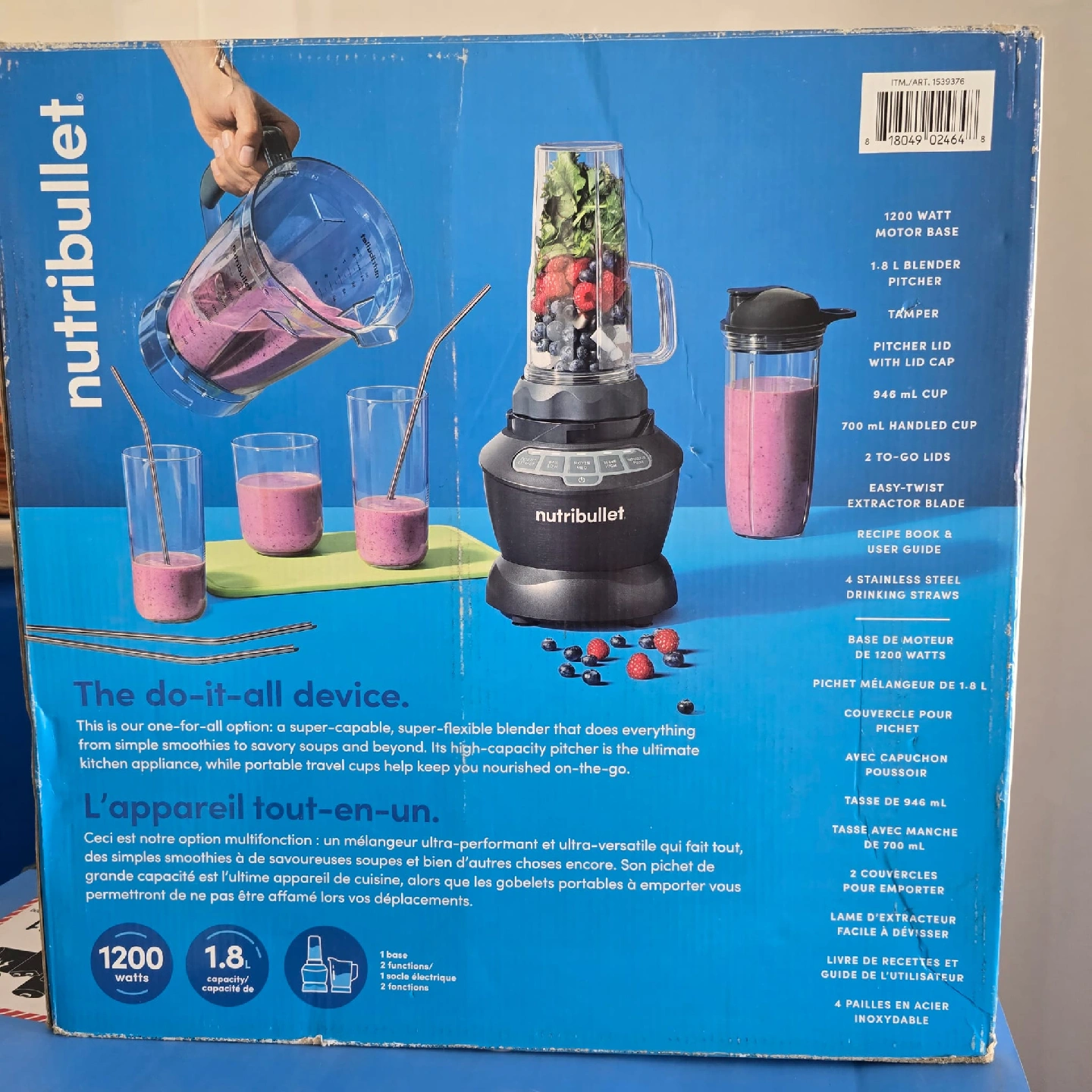 Power & Performance A 1200-watt motor gives you plenty of strength to tackle smoothies, soups, sauces, nut butters, and more with ease. Three precision speed settings, plus a pulse function and an Extract program for pulling out the most nutrients from your ingredients. Capacity & Flexibility Comes with a 64-oz (≈1.8 L) large pitcher for making multiple servings at once. Also includes smaller single-serve cups: 32-oz and 24-oz sized ones with to-go lids, perfect for personal blends or portability. Only available for pickup.