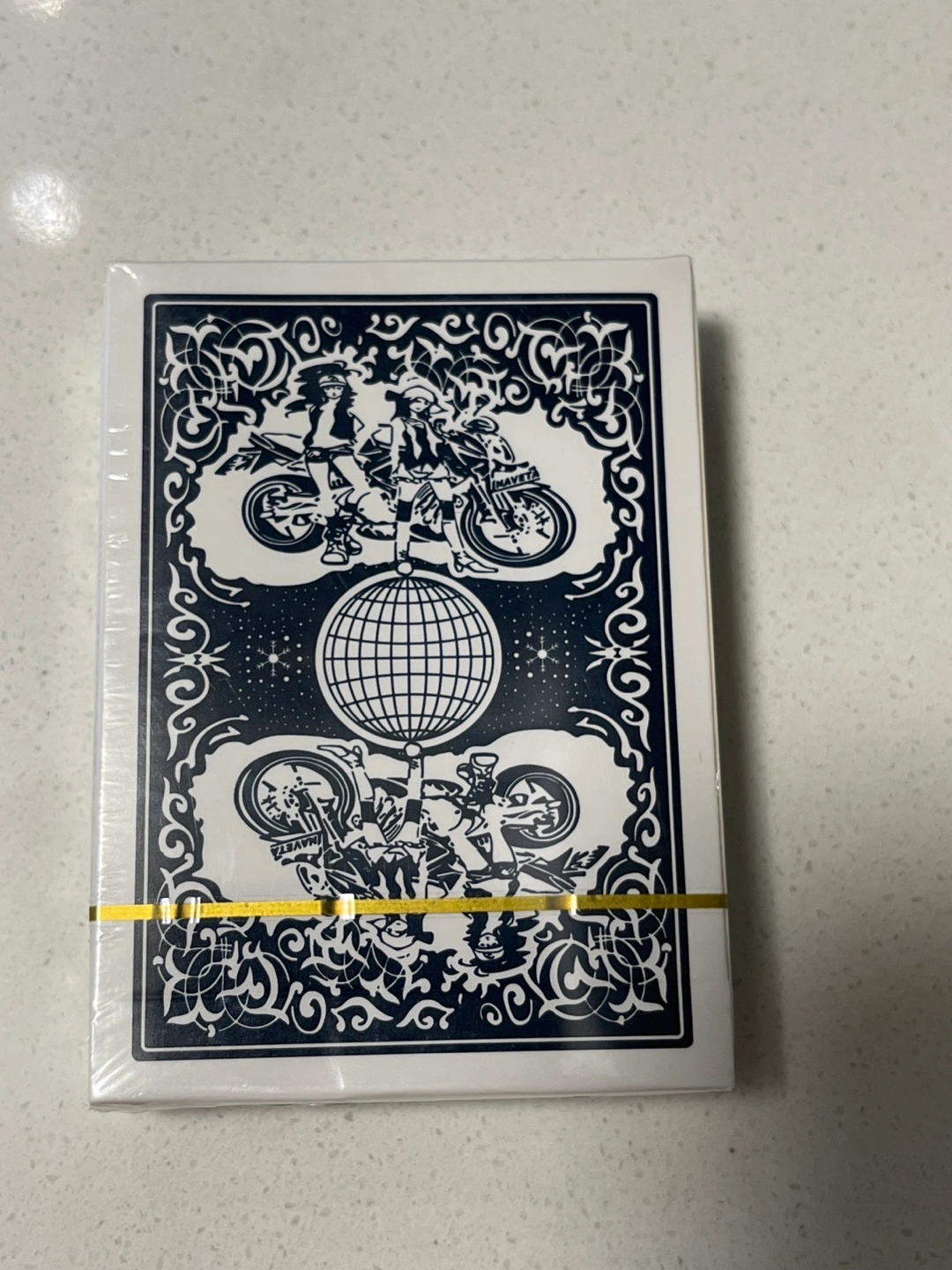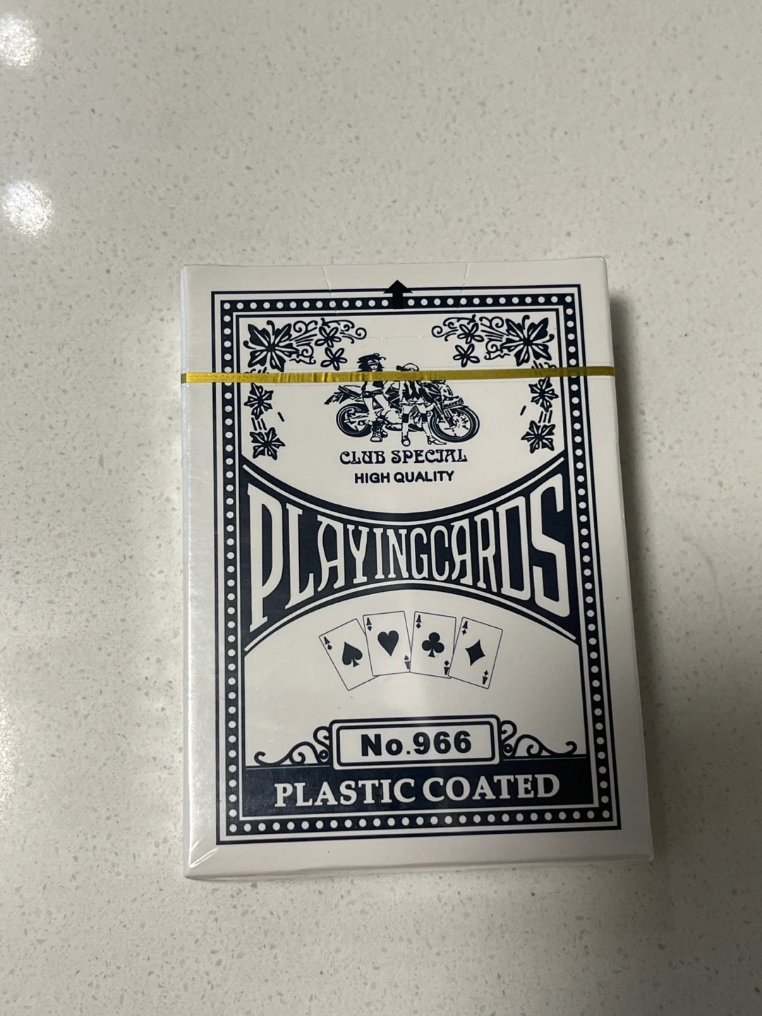 Selling a brand new deck of playing cards. These are Club Special, high quality, and plastic coated. The box has a cool motorcycle design on it. Perfect for card games or magic tricks!