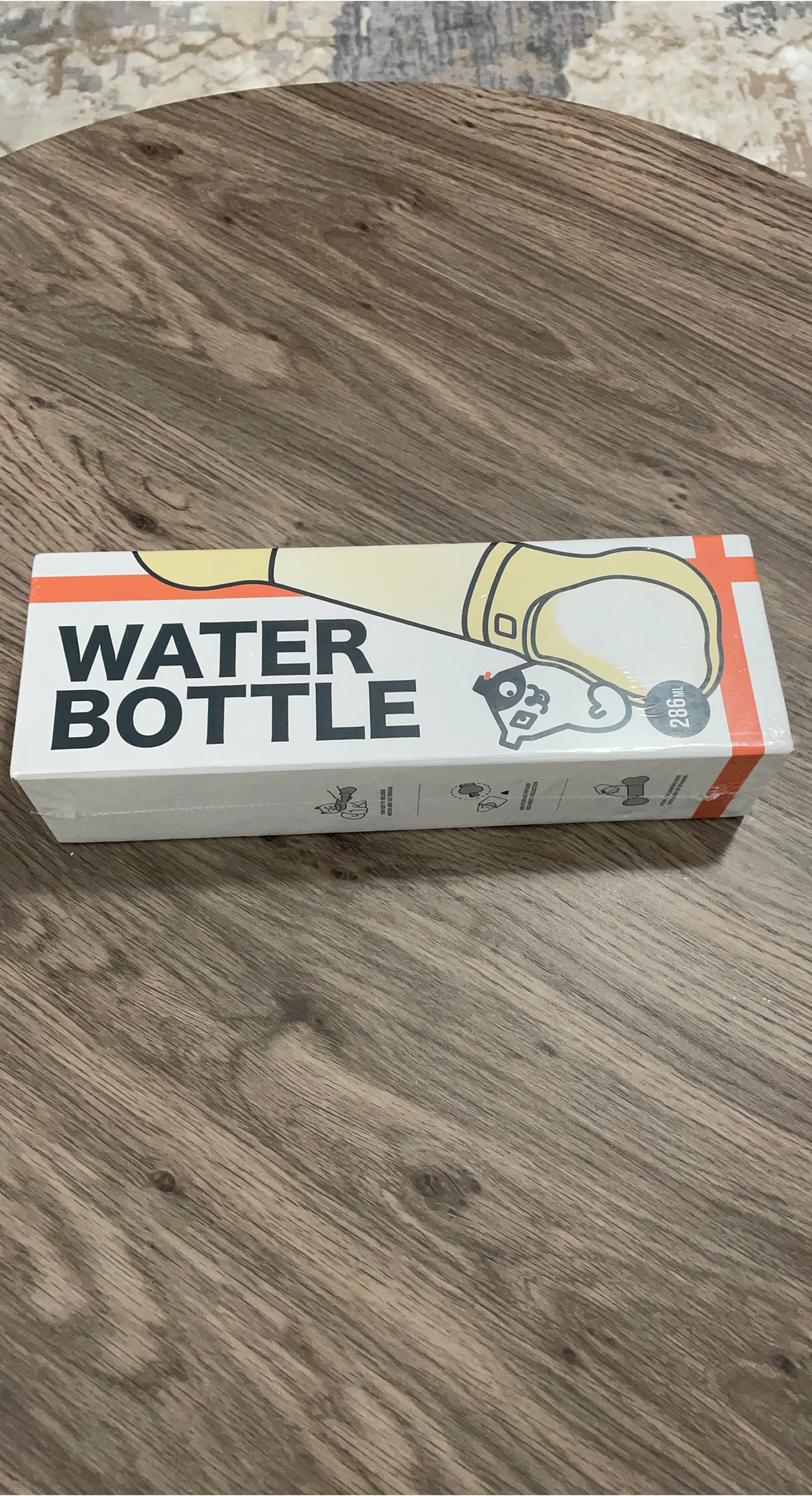 Selling a new portable dog water bottle! It's white and comes in the original box. Key features: - One key to release water and big trough - Bag storage for easy dog waste collection - Strap for carrying over shoulders or by hands Product details: - Product Size: 299x105x66MM - Main Material: ABS, PC, Silicone - Weight: 0.4KG
