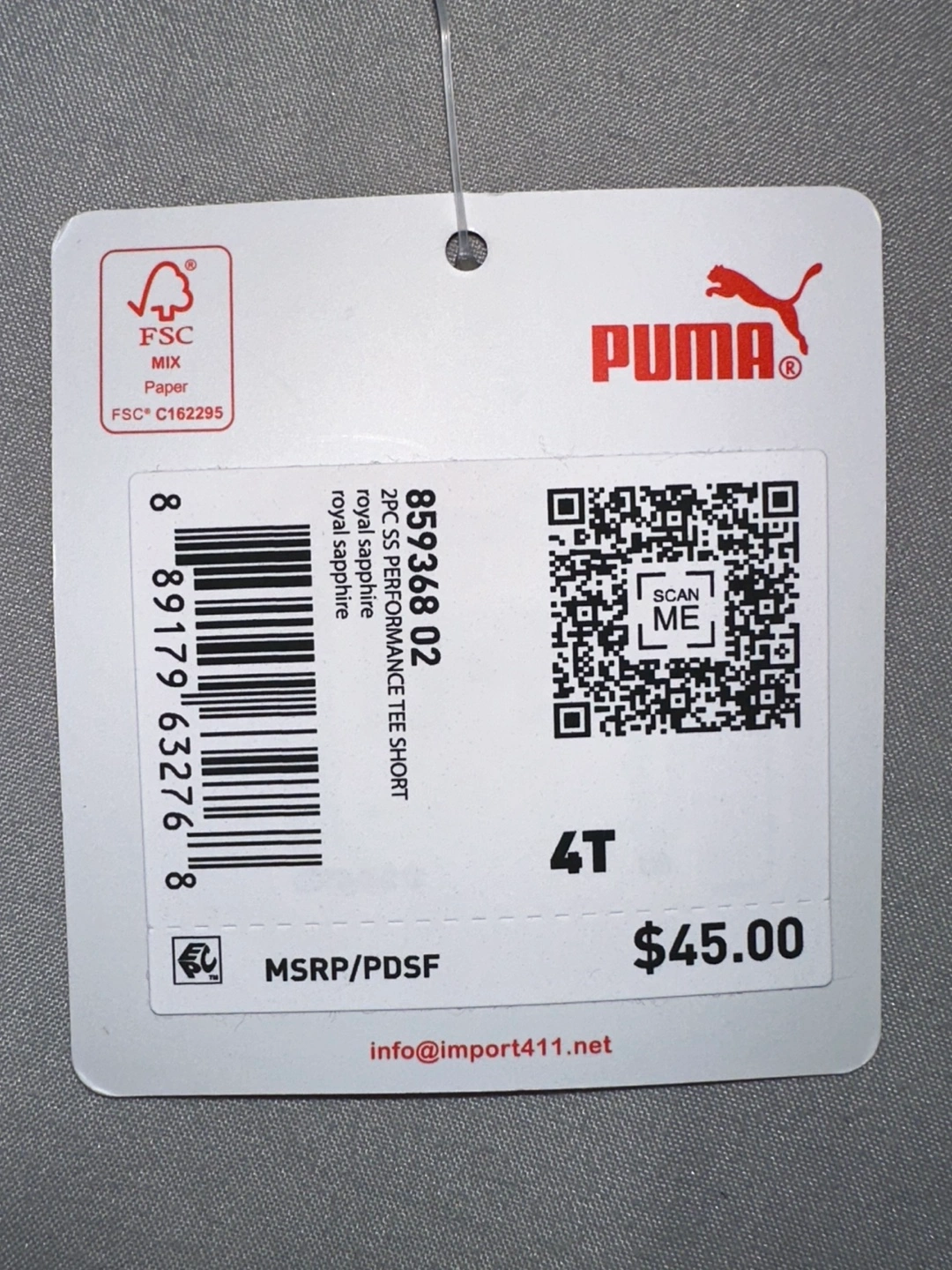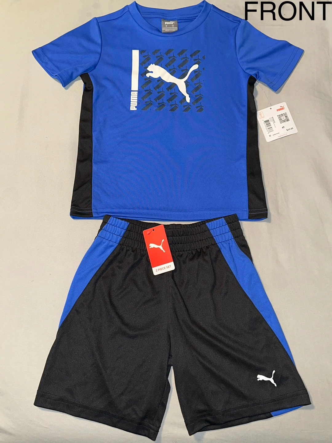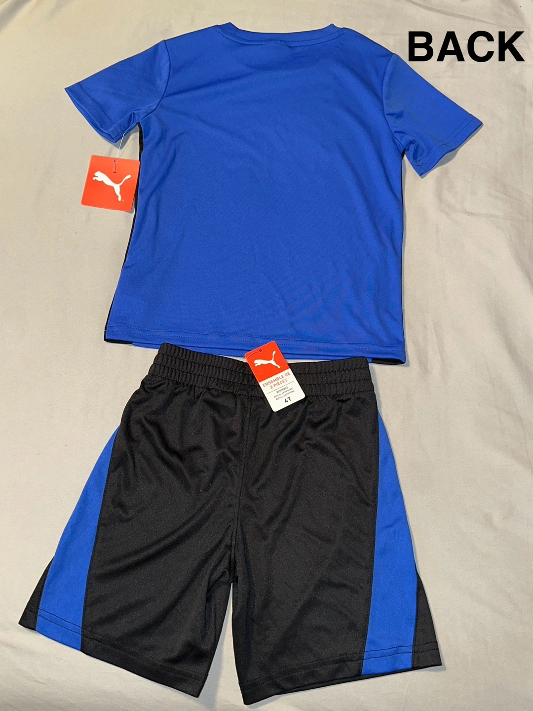 This is a brand new, never worn Puma 2-piece set! It includes a short-sleeve performance tee and matching shorts. The colour is royal sapphire and the size is 4T. The original price was $45!