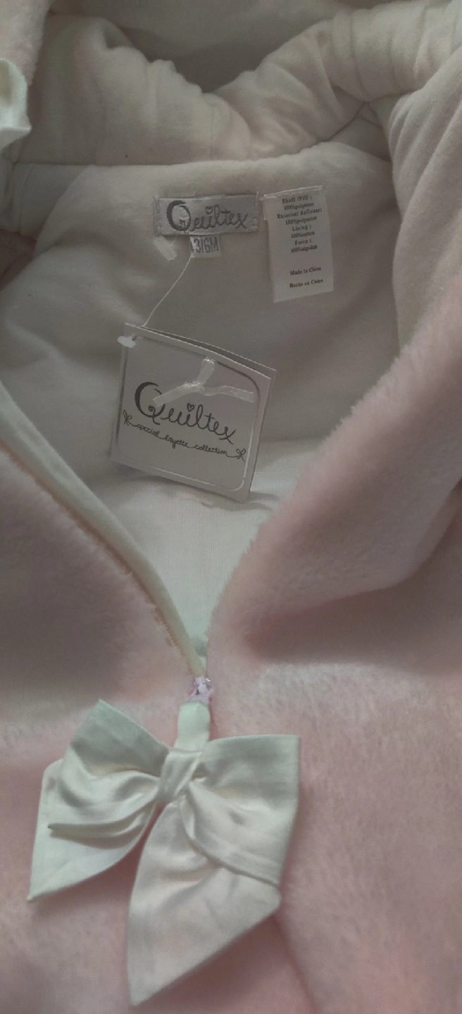 This is a brand new. perfect for keeping your little one warm! It's a size 3/6M and comes in a lovely light pink colour. Feaatures adorable bows and is from the Quiltex special layette collection. Price is firm and you must be able to pick up soon