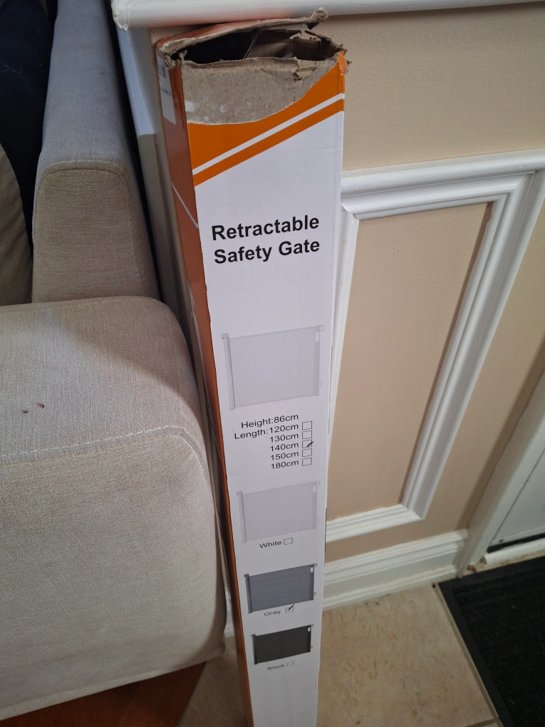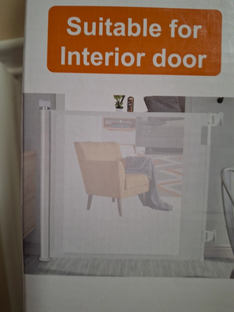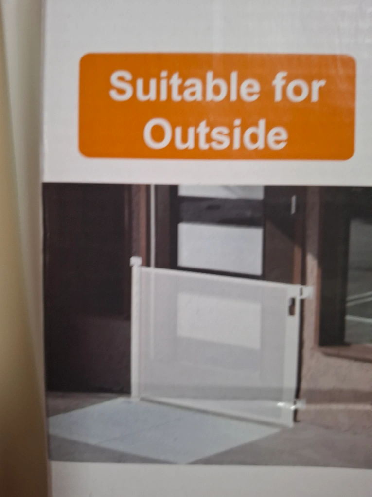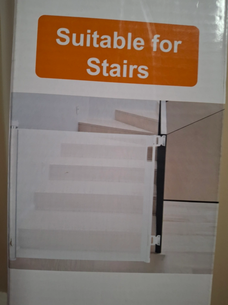 New retractable safety gate. White colour. Suitable for indoor and outdoor use. adjustable length.