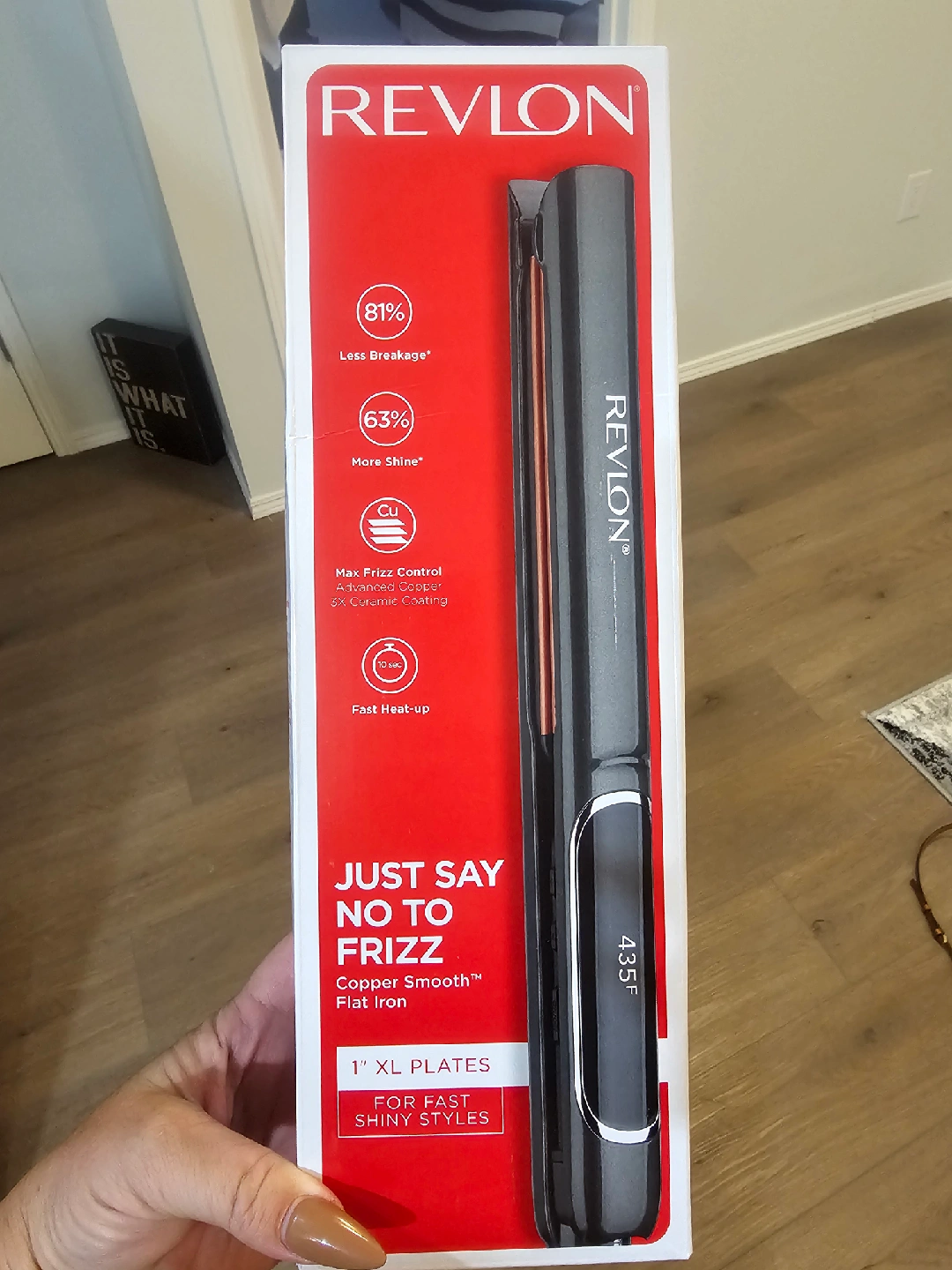 Selling a brand new Revlon Copper Smooth Flat Iron with XL plates! It features advanced copper 3X ceramic coating for max frizz control. It heats up fast and has a tangle-free swivel cord for easy styling. Also has a locking switch for convenient storage