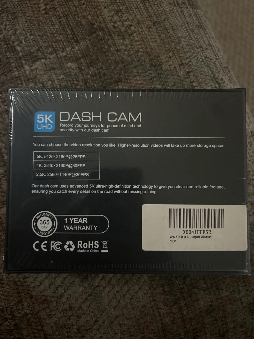 Selling a brand new Sarmert C1 5K Dash Cam! It's still in its original packaging. Key features include: - 5K UHD recording - GPS tracking - App control - 5G WiFi - 2" IPS Screen It also has WDR (Wide Dynamic Range) to enhance picture quality and a built-in G-Sensor to protect video files in case of an impact