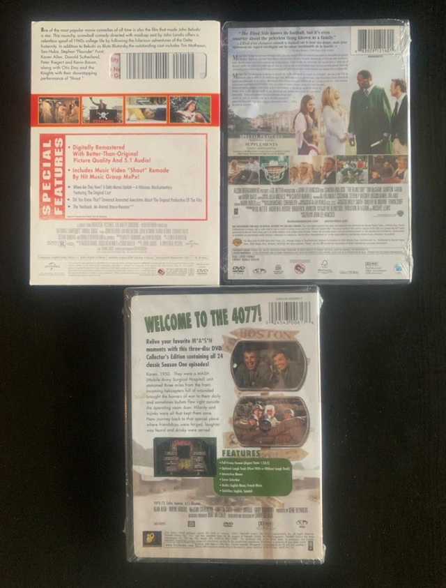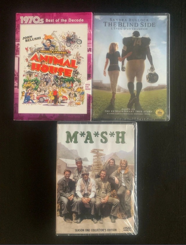 New! Sealed DVD movies. • National Lampoons Animal House - $10 • The Blind Side - $4 • MASH - Season One Collectors Edition - $7 Check out my other ads. Thanks for looking!