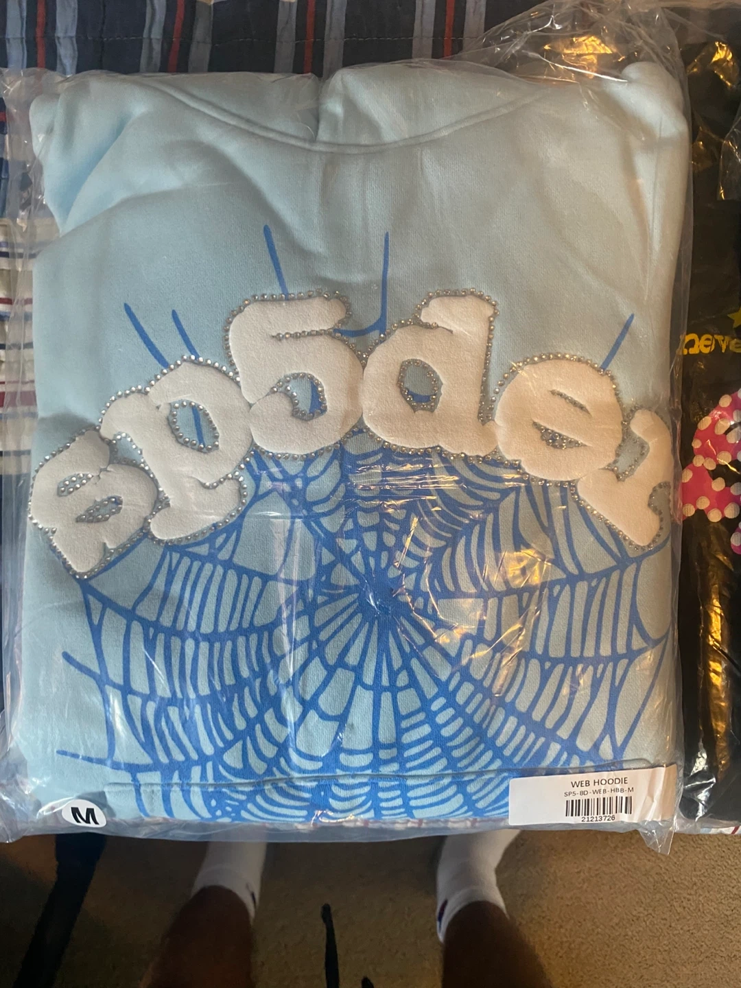 Selling a brand new Sp5der Web Hoodie, still in the original packaging! It's a size medium and features the iconic web design. Perfect for you or your kids still in package and brand new! Check my profile for more items