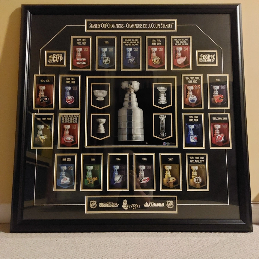 Stanley Cup Champions hockey frame. Brand new, giftable, never been hung up. Black frame. Comes with wire hanger on the back. Pick up near Grandview/Beatrice in Oshawa