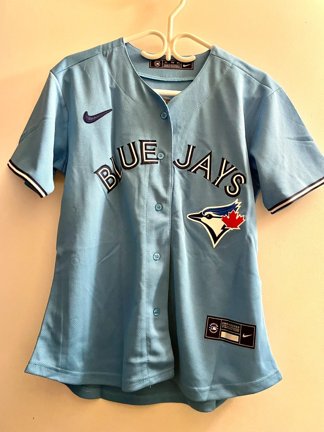 Brand New Women’s TORONTO BLUE JAYS MLB LIGHT BLUE Baseball STITCHED Jersey BICHETTE #11 XL $40 FITS MORE LIKE A LARGE Cross posted Pick up in the Mapleview mall area in Burlington (Maple/Fairview)