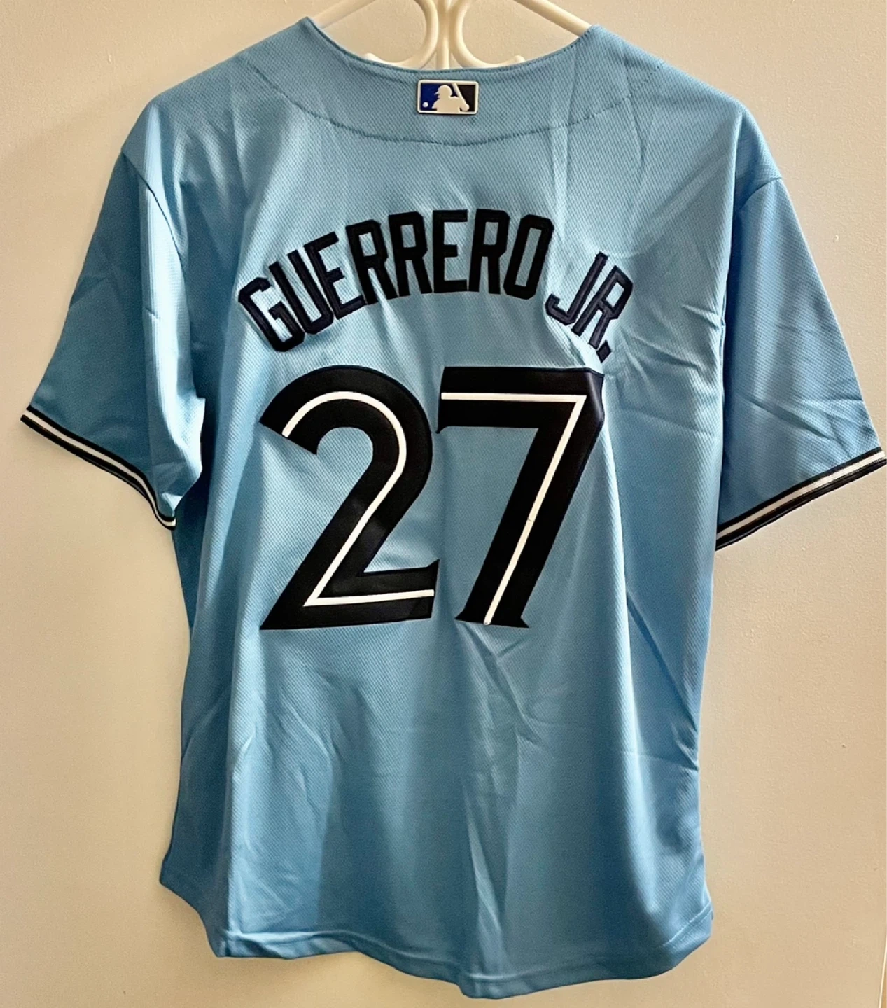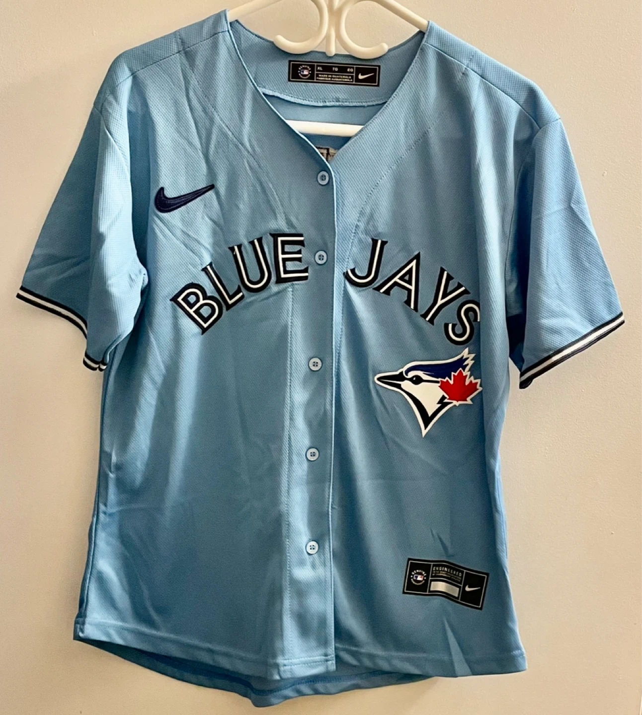 Brand New Women’s TORONTO BLUE JAYS MLB LIGHT BLUE Baseball STITCHED Jersey GUERRERO #27 XL $40 FITS MORE LIKE A LARGE Cross posted Pick up in the Mapleview mall area in Burlington (Maple/Fairview)