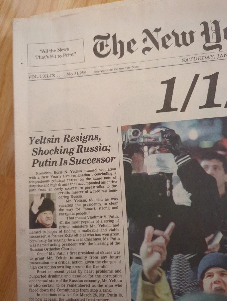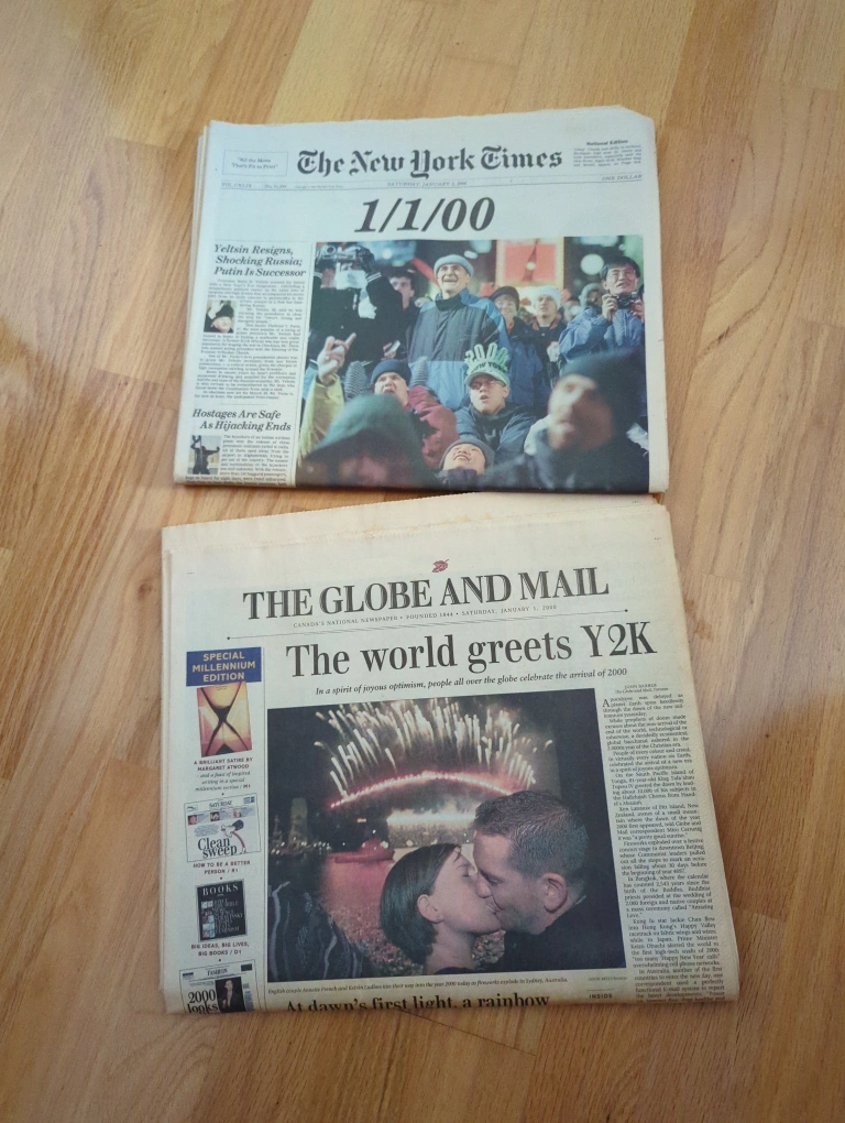 Selling two newspapers from January 1, 2000: The New York Times and The Globe and Mail. Both newspapers mark the turn of the millennium!