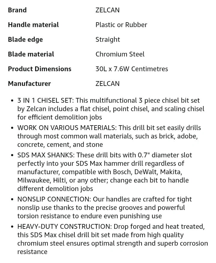 ๐ฅ NEW! ZELCAN SDS Max Chisel Set - 3 Piece