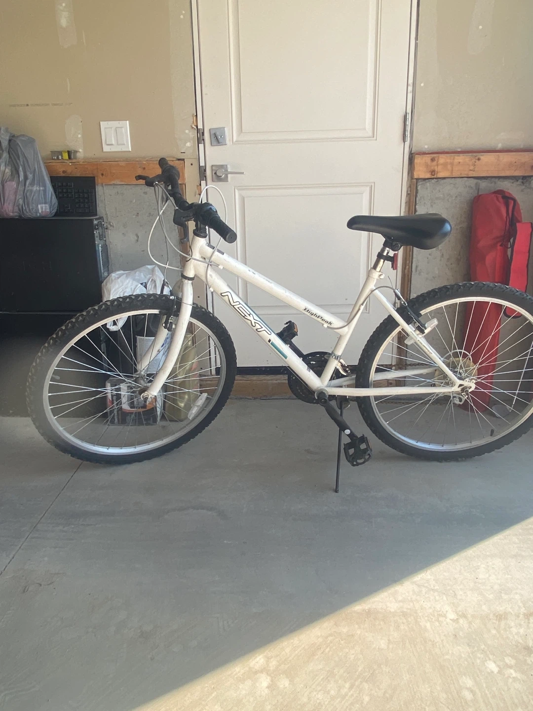 Selling a white NEXT High Peak bicycle. It's in good condition and ready for a new owner to enjoy some outdoor adventures! Perfect for cruising around the neighbourhood or hitting some trails