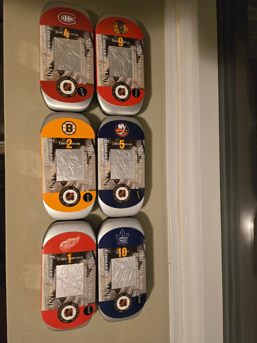 Selling a collection of NHL All-Stars coins and stamps. It includes Jean Beliveau, Syl Apps, Bobby Hull, Eddie Shore, Terry Sawchuk and Dennis Potvin hockey legends. A great addition for any hockey fan or collector!