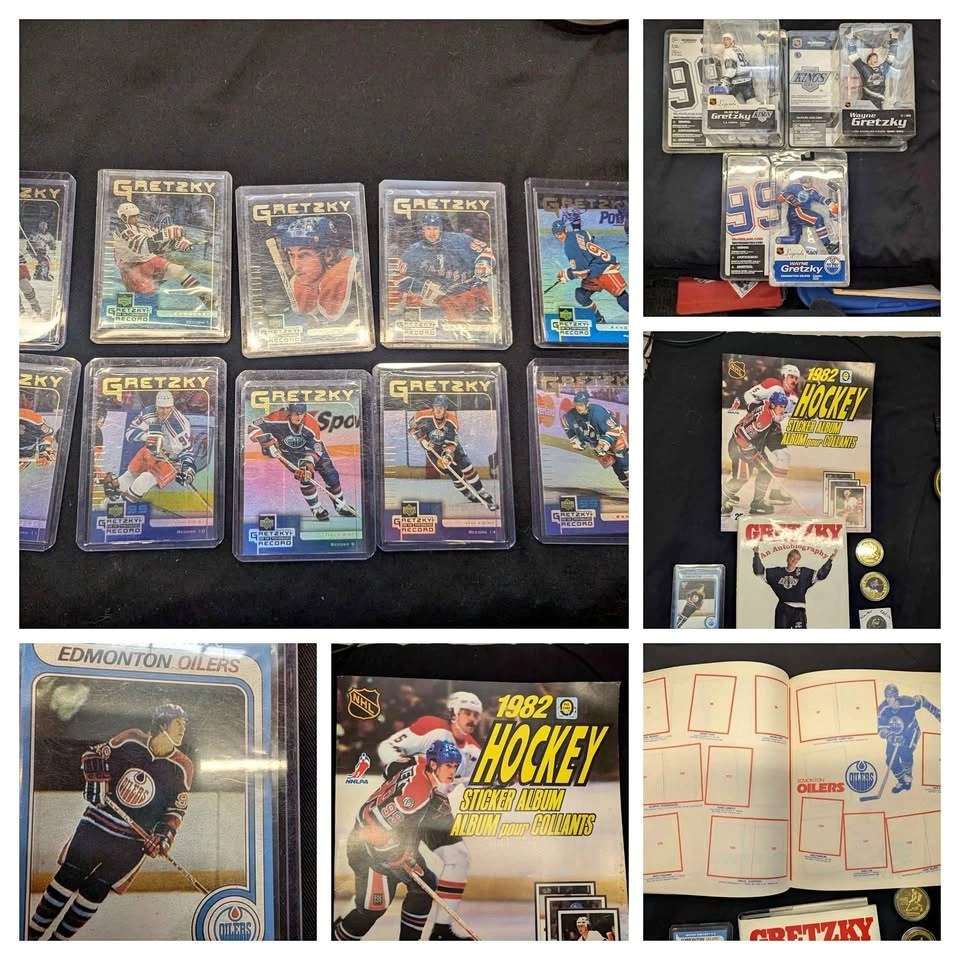 Selling a Wayne Gretzky collection consisting of cards, coins, books, metal display box, special inserts, figures and card sets, what you see is what you get, all cards are mint with no creases or fuzzy corners, some things are hard to find making them rare, rookie is a reprint, $120 is a very very reasonable price, but I'm open to offers, porch pick up in port hope.