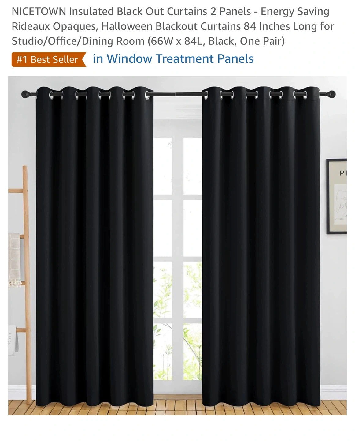 I have a variety of blackout curtains for sale! Available in different colours like cappuccino, plum purple, beige, grey, and black. Sizes vary, including: - W 52 x L 96 inches - 52 x 54 inches - W52 x L63 inches - 66W x 84L inches Perfect for blocking out sunlight and adding privacy to any room