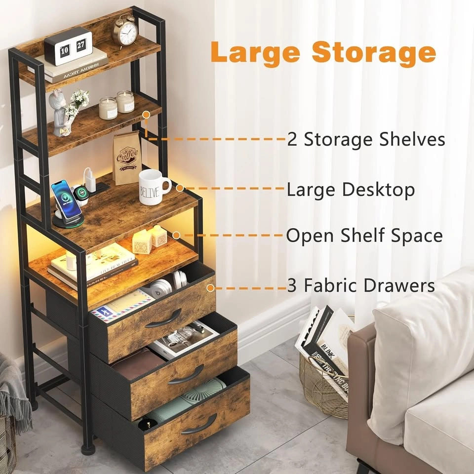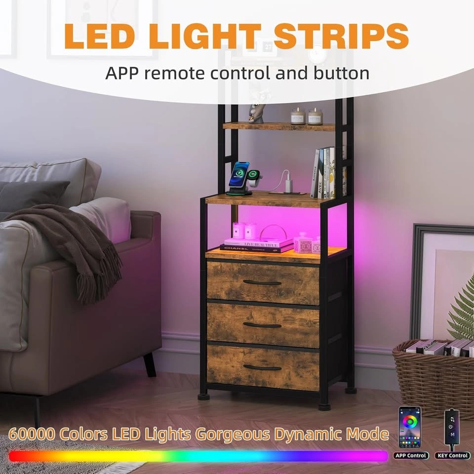 BNIB Night Stand with Charging Station and LED Lights, Bedside Table with 3 Fabric Drawers and 4 Tier Shelves Super cool looking unit, only selling it because my dad felt the colour wouldn't match well with his home office setup Fairly Firm on the price. I'll take $10 off on same-day pick-ups #186 Pickup near 10800 Bayview Avenue, Richmond Hill If listing is up its still available