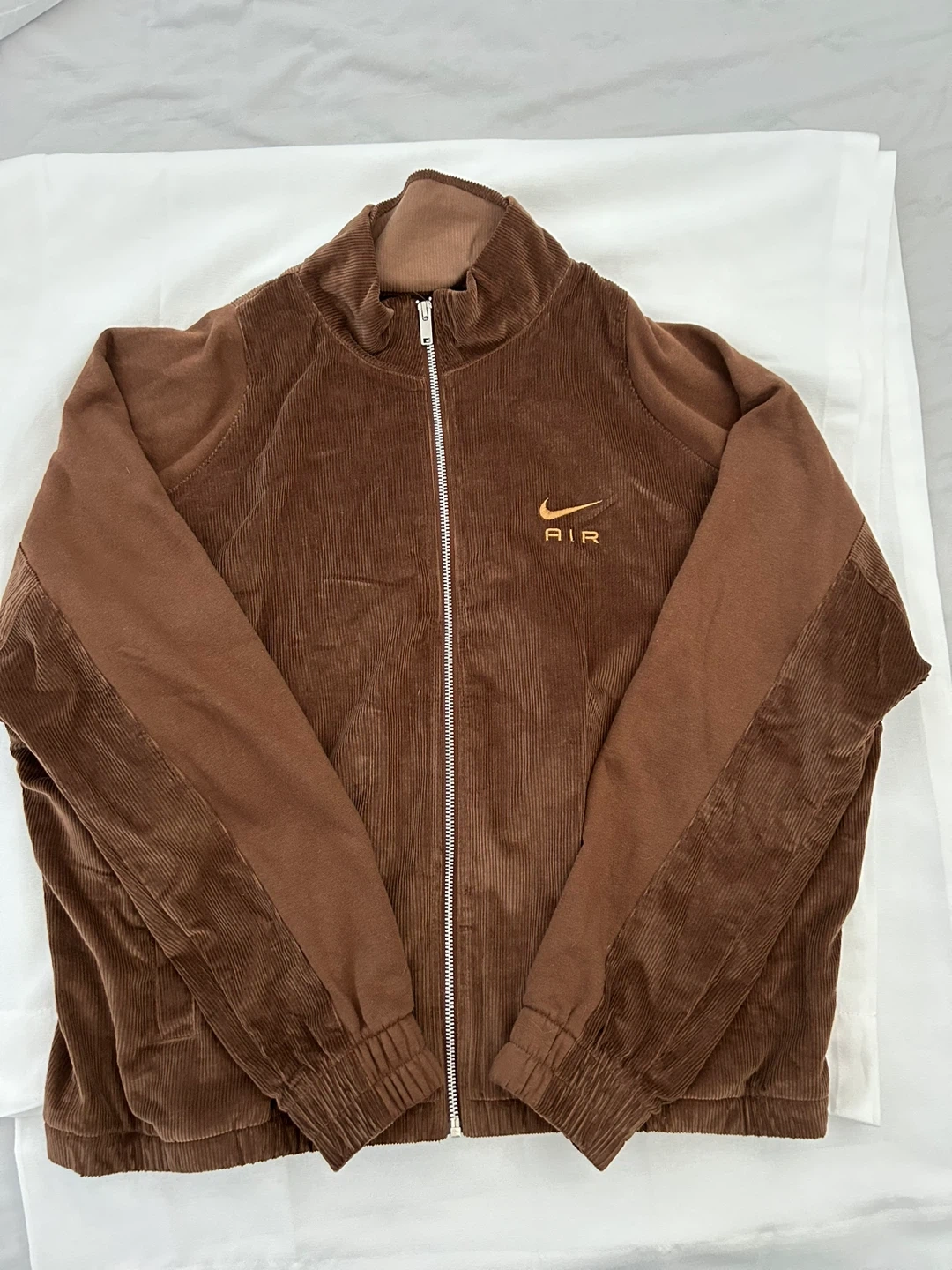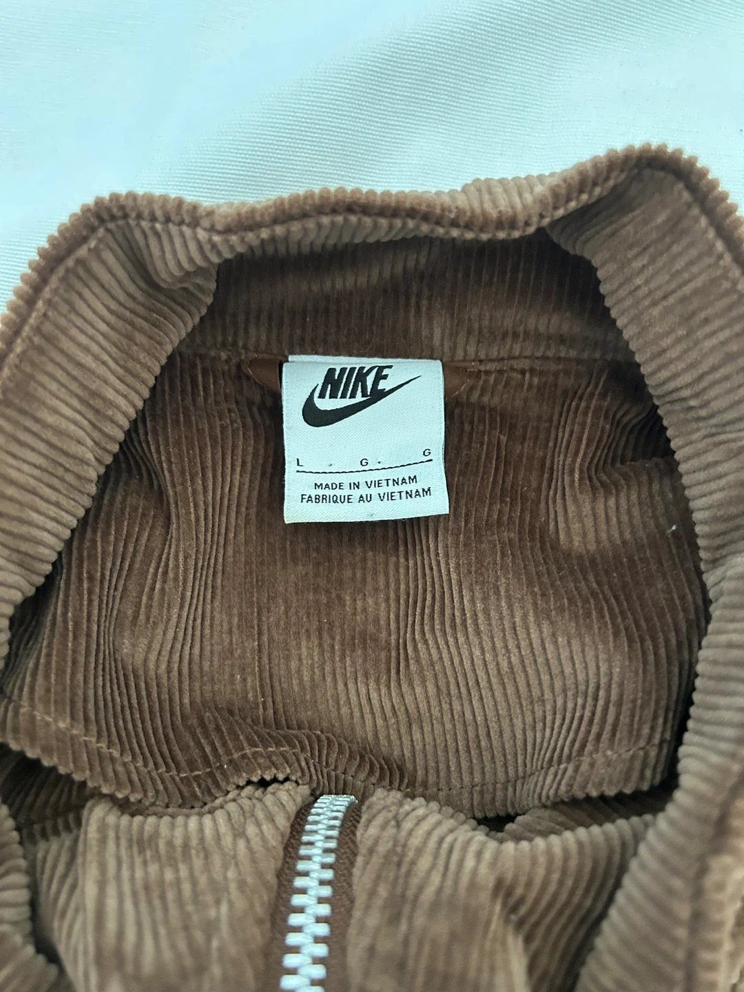 Selling a stylish Nike Air corduroy jacket in size large. It's a great piece for adding some texture and warmth to your wardrobe. The jacket features a full zip and the classic Nike Air logo. The corduroy material gives it a unique and fashionable look!