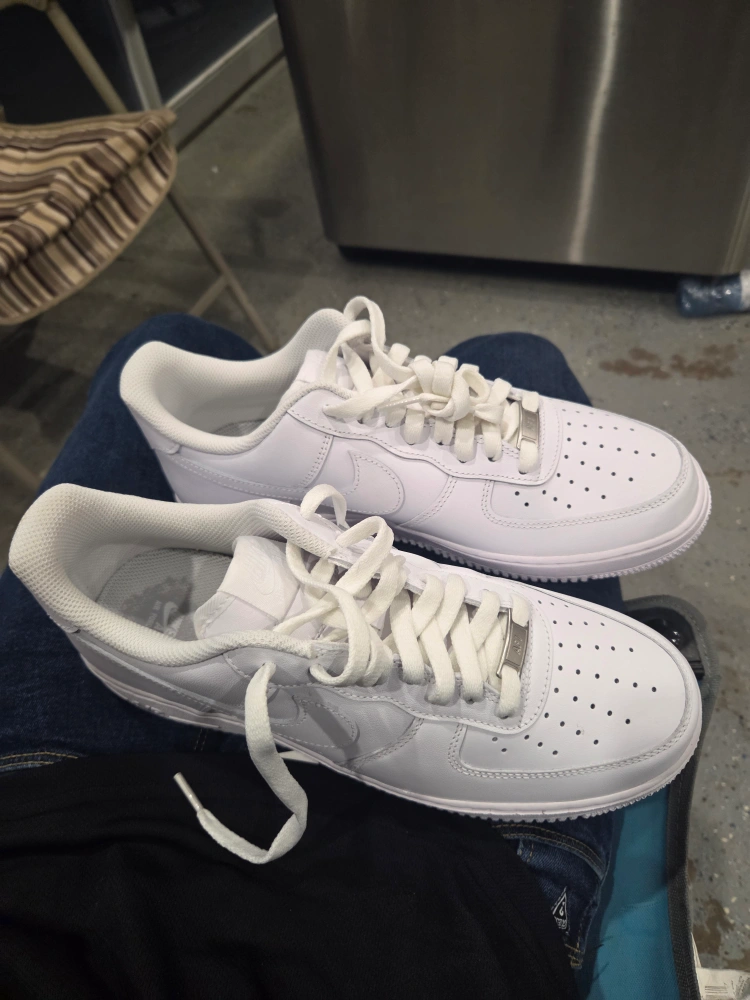 Selling a pair of Nike Air Force 1 Low sneakers in white. They look to be in great condition and ready for a new home! Classic style and comfortable fit