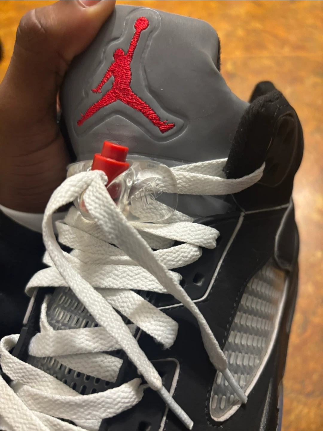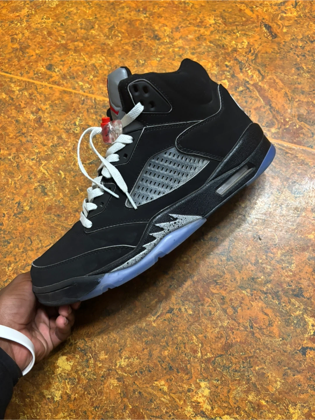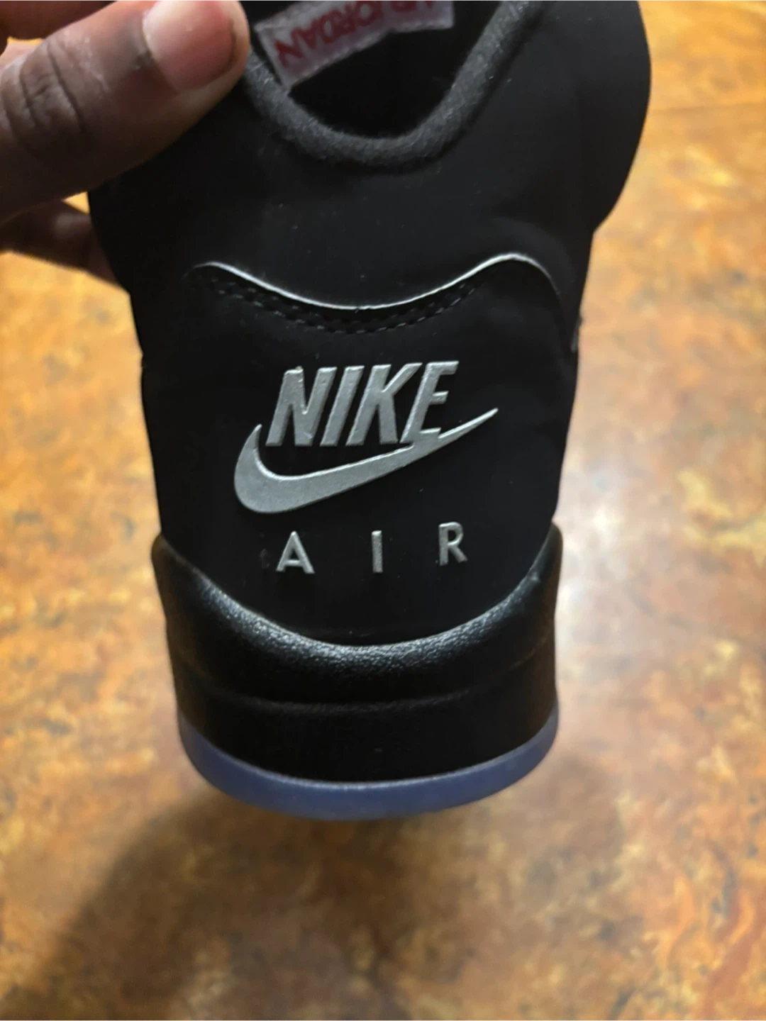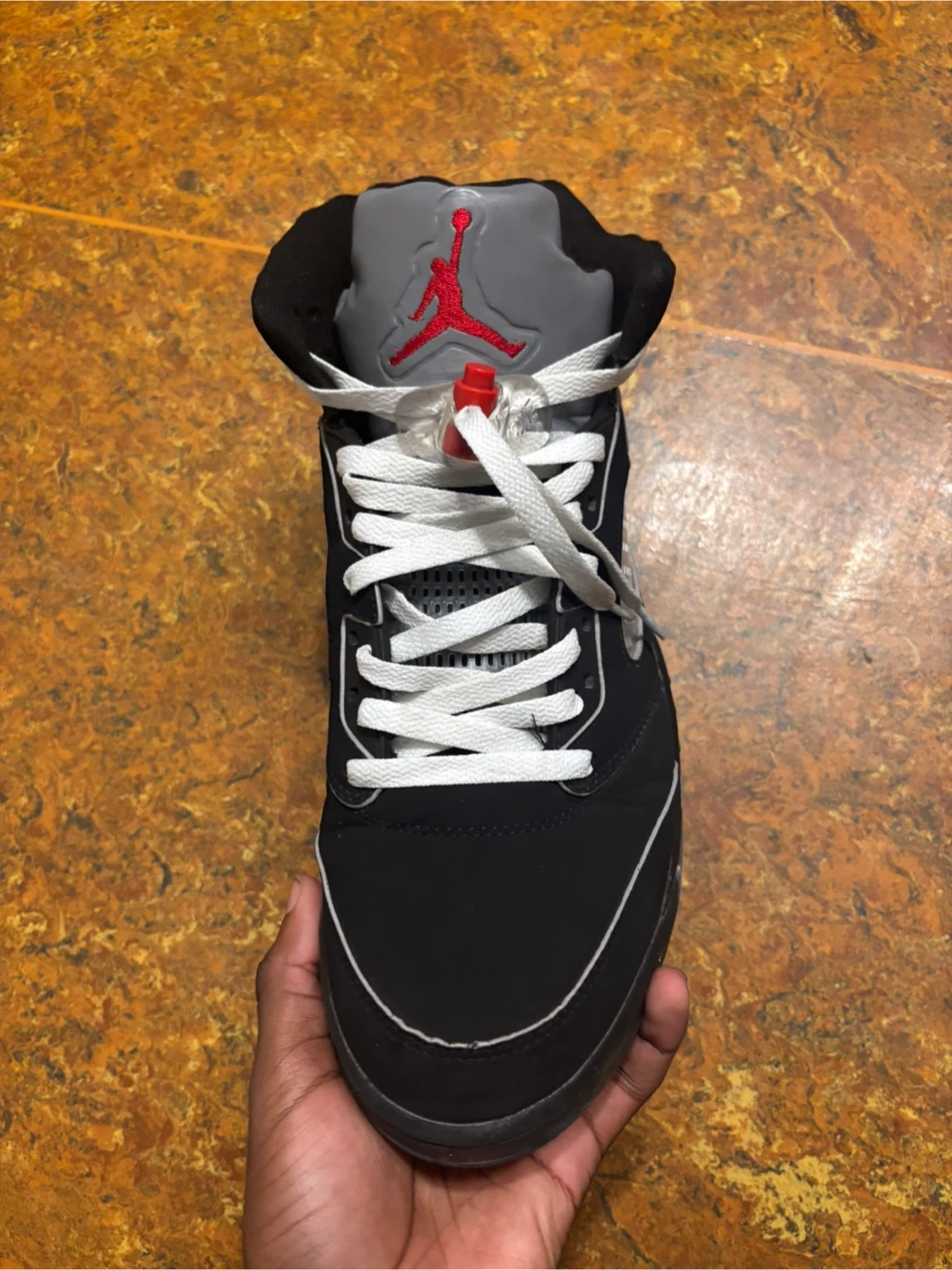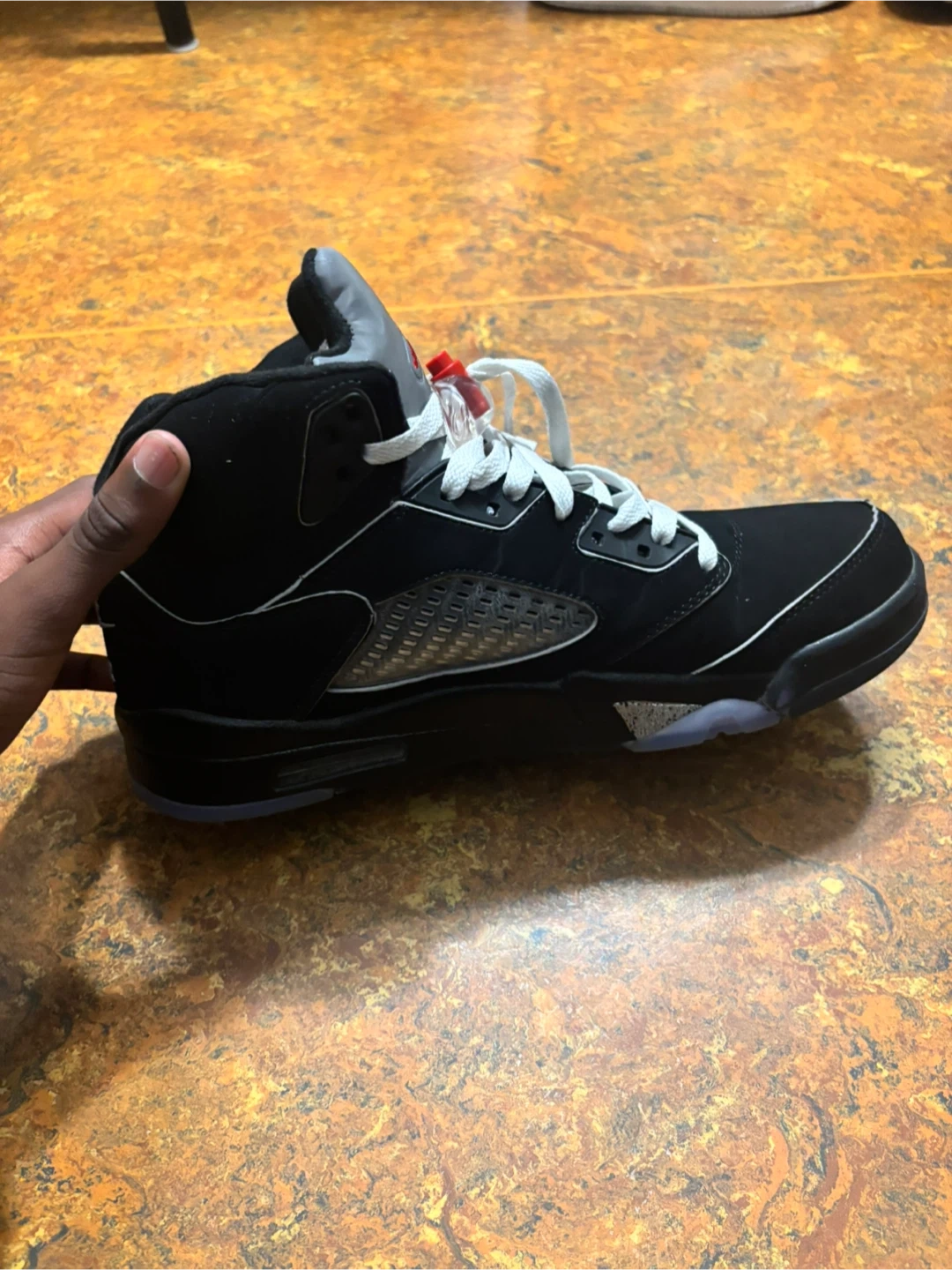 Selling a pair of Nike Air Jordan 5s in black and silver. They're in good condition and ready for a new home!