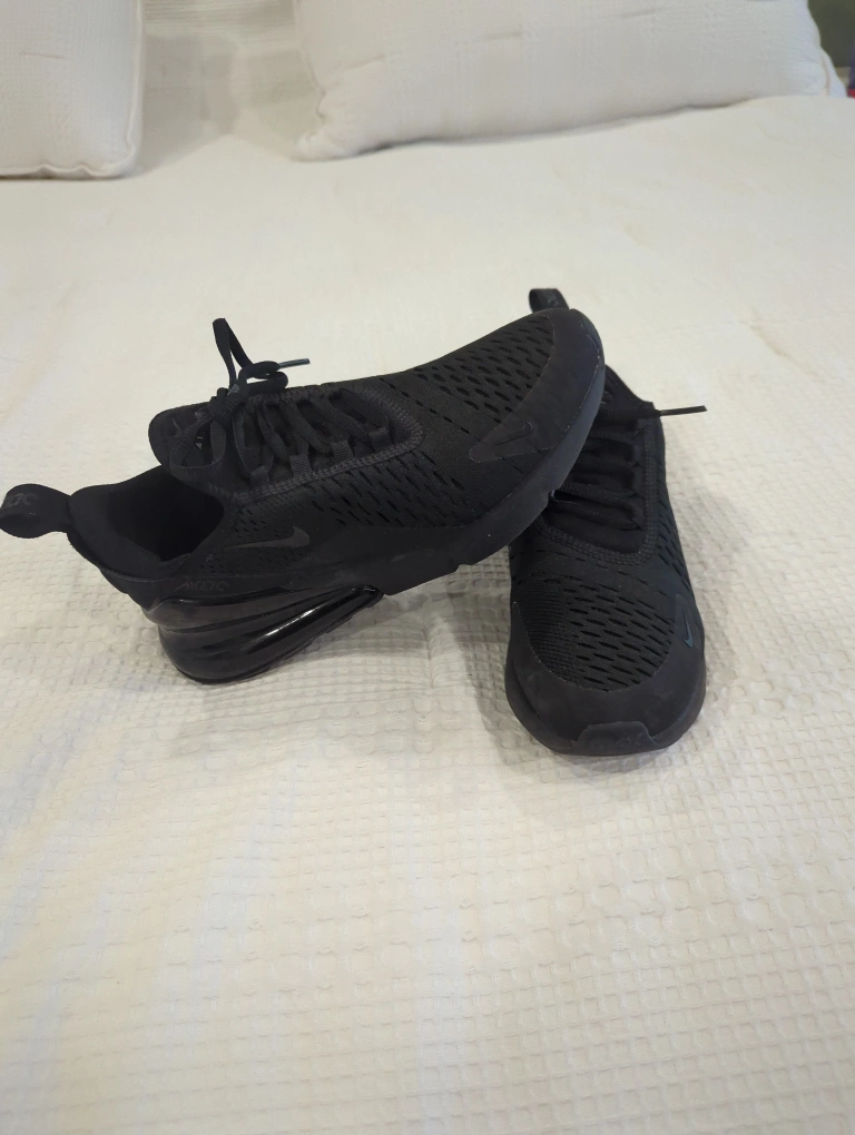 Selling a pair of Nike Air Max 270 sneakers in black. They are in excellent condition and ready for a new home! These shoes are stylish and comfortable, perfect for everyday wear or workouts. Grab them before they're gone!