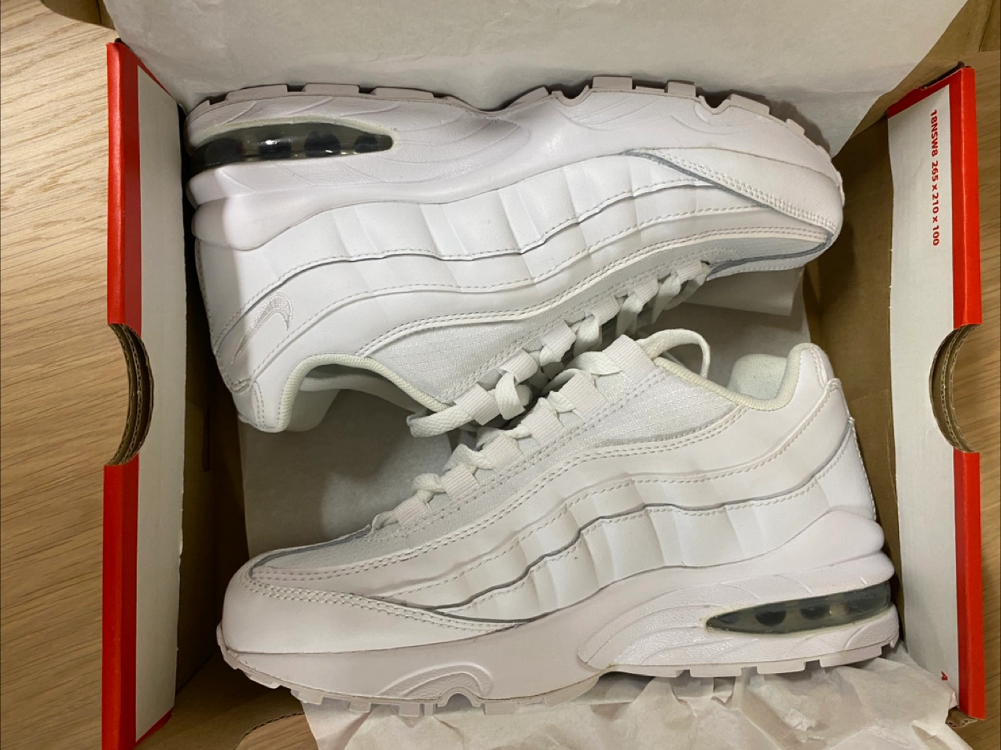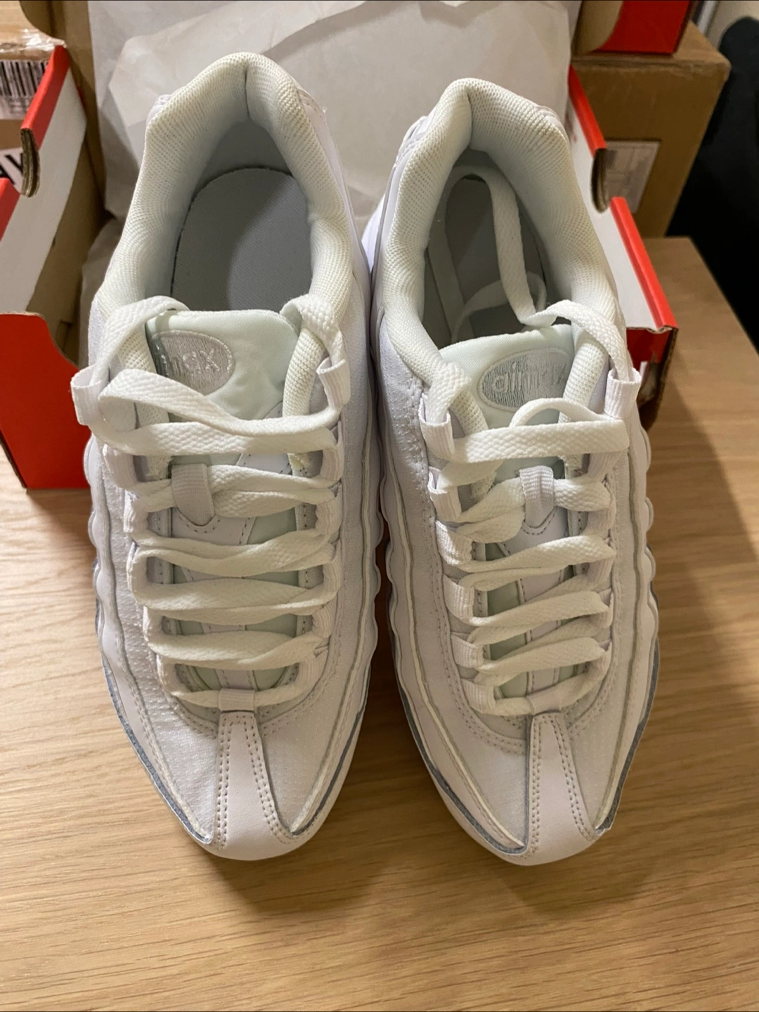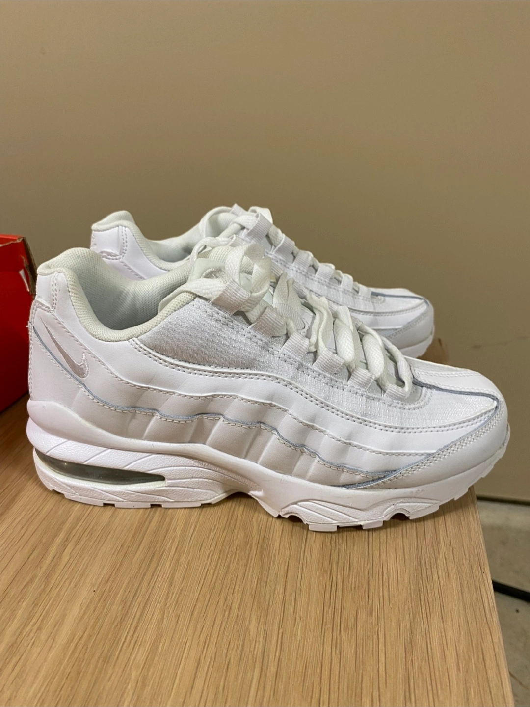 Selling a pair of Nike Air Max 95 in white. They come with the original box! These are a classic and super comfortable. Size 4Y (W5.5/ UK3.5/ CM23) Brand new