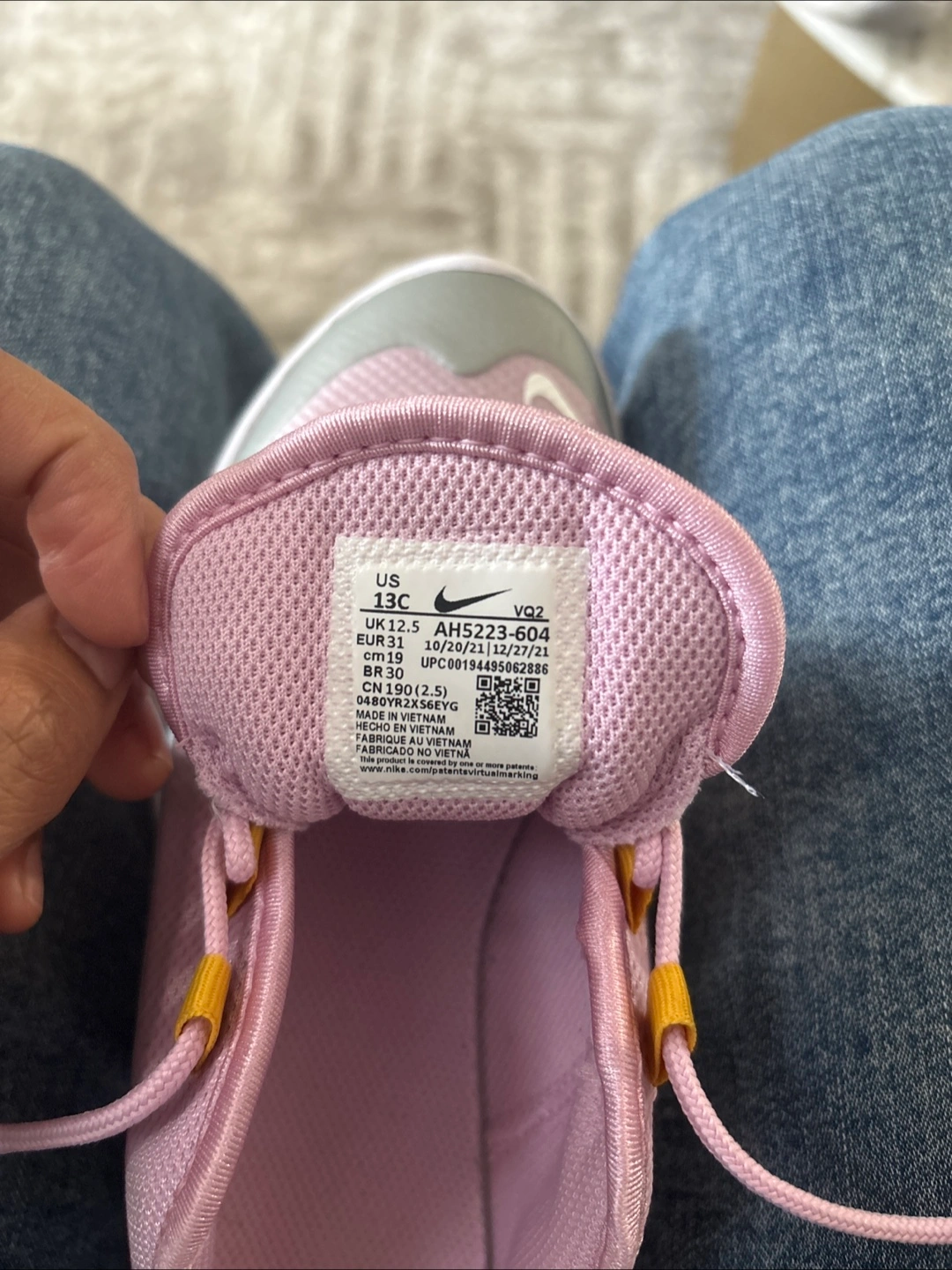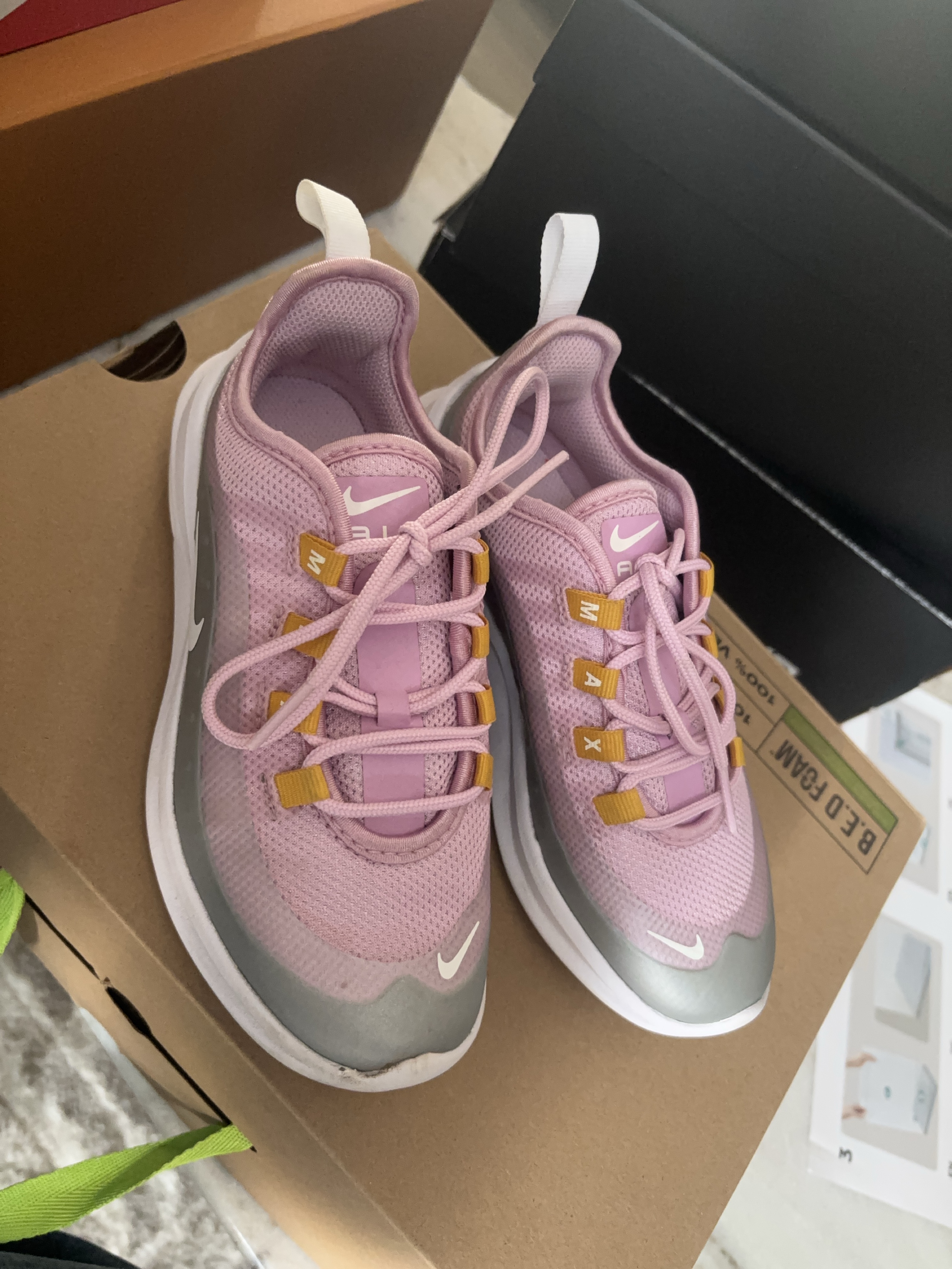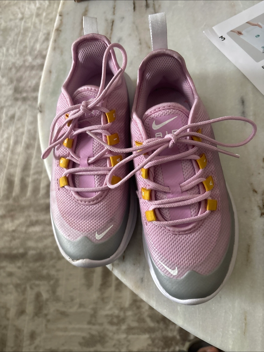 These sneakers are pink with white and silver accents. The shoes are made with laces. Imagine yourself wearing these on a relaxing stroll in the park.
